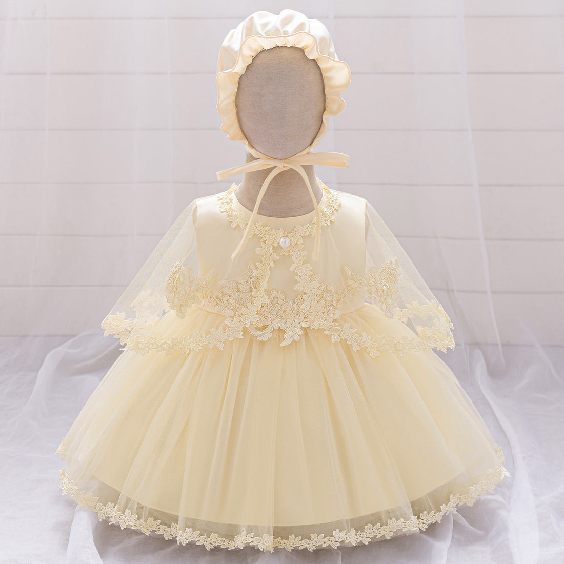 2023 summer new girls' children's clothing children's wedding dress baby one-year-old dress applique mesh fluffy skirt