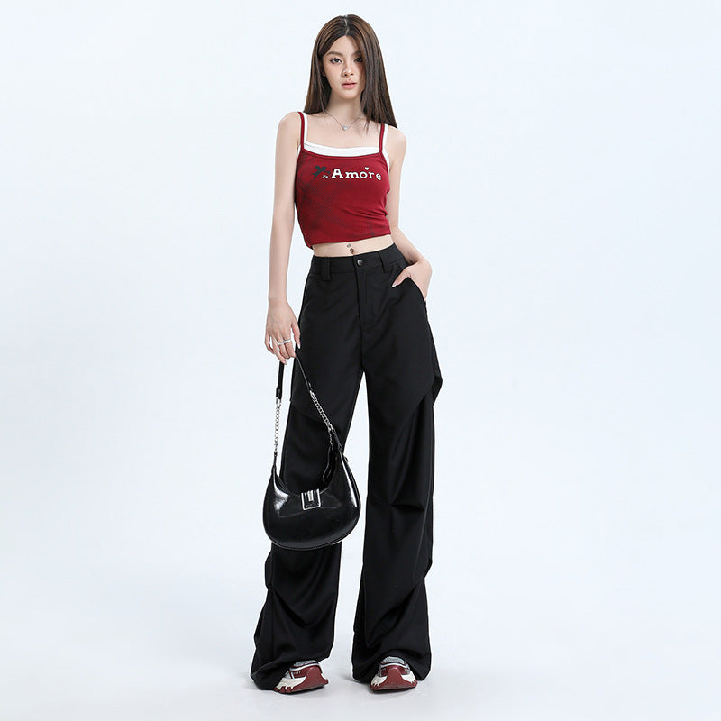 小众设计感高街黑色褶皱宽松休闲阔腿微喇拖地工装裤