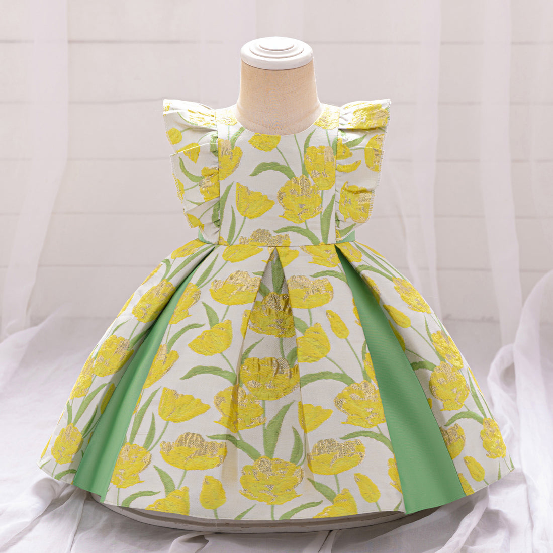 Europe and the United States new baby dress baby year old printed flower children's dress skirt children's birthday party 100 days wash dress