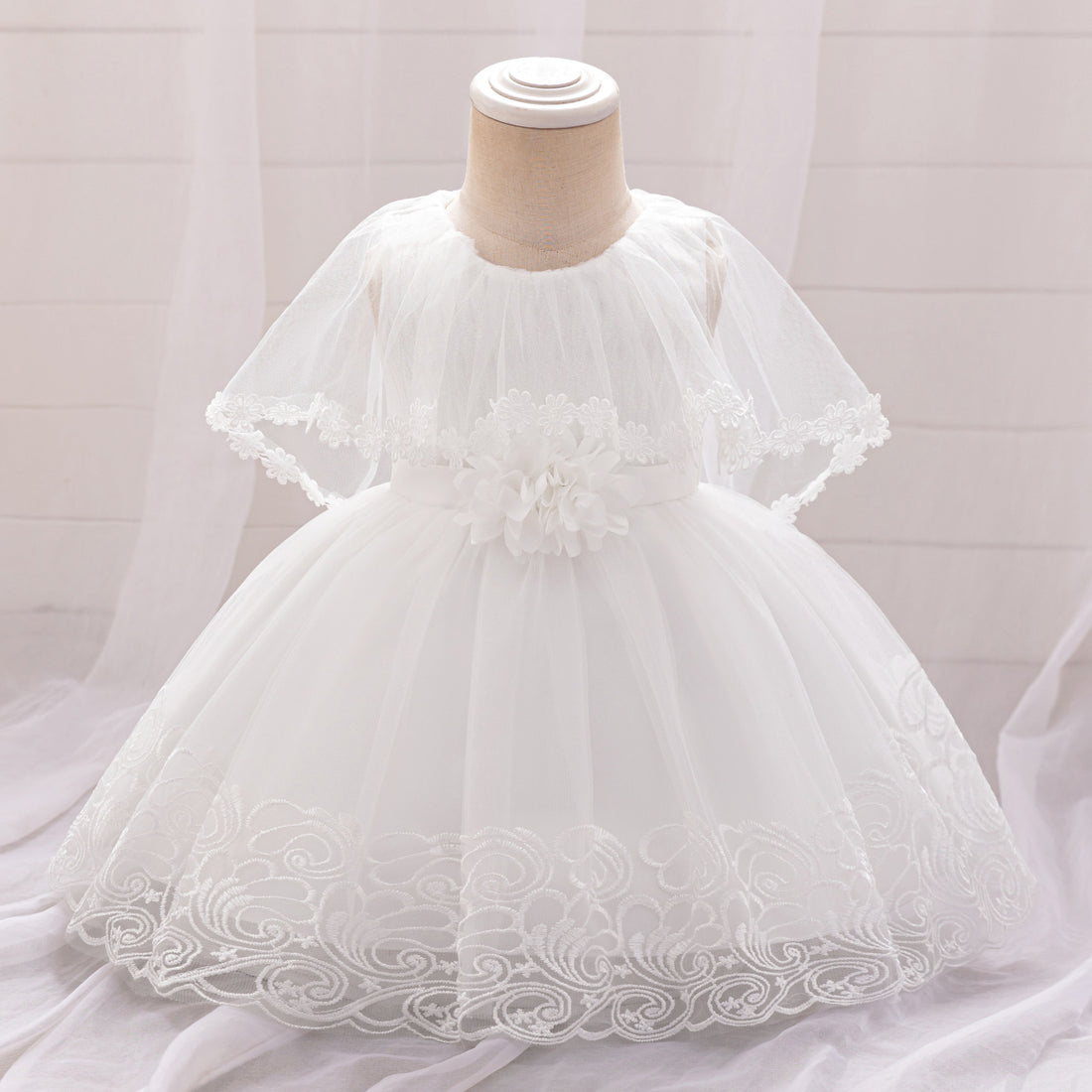 European and American new baby dress princess dress baby year old three-dimensional flower mesh dress girls 100 days dress