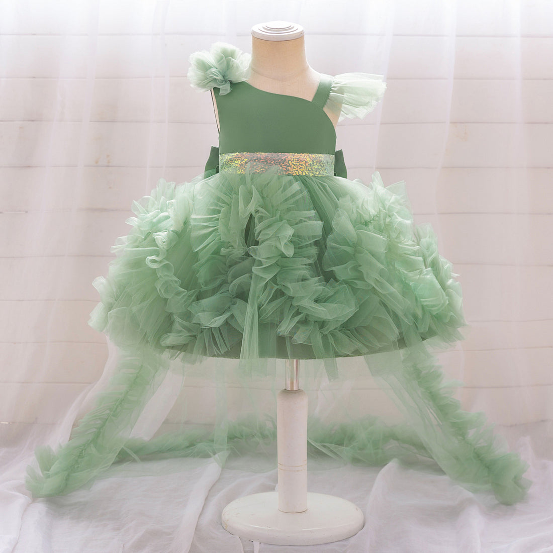 New girls' baby one-year-old trailing skirt infants and toddlers slanted shoulder puffy cake dovetail skirt children's 100-day dress skirt