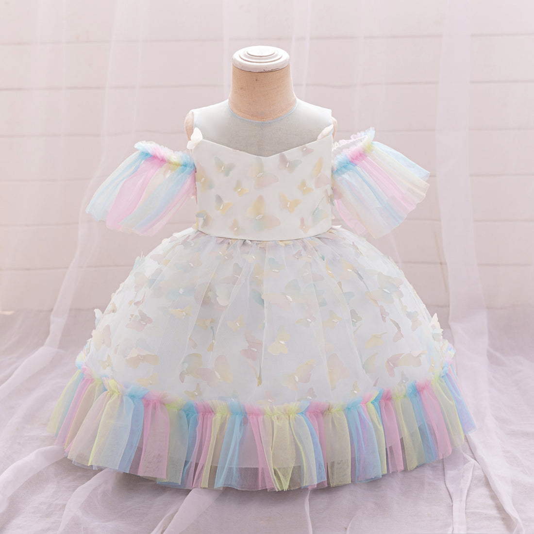 New Girls Princess Dress Mesh Children's Dress Girls' Medium and Children's Three-dimensional Small Butterfly Trouser Dress Birthday and One-Year Dress