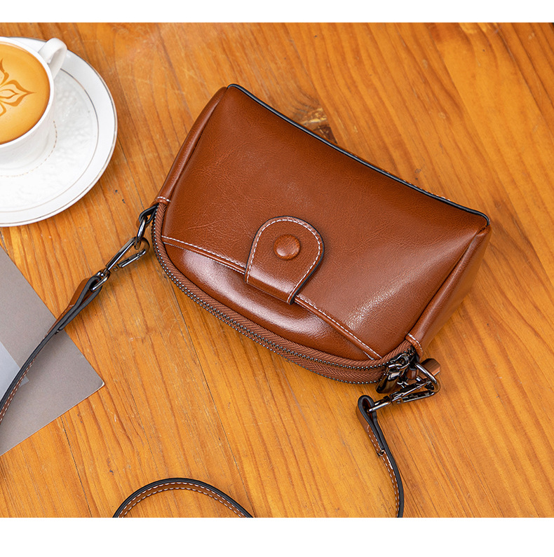 Retro Oil Wax Crossbody Bag – Stylish & Compact