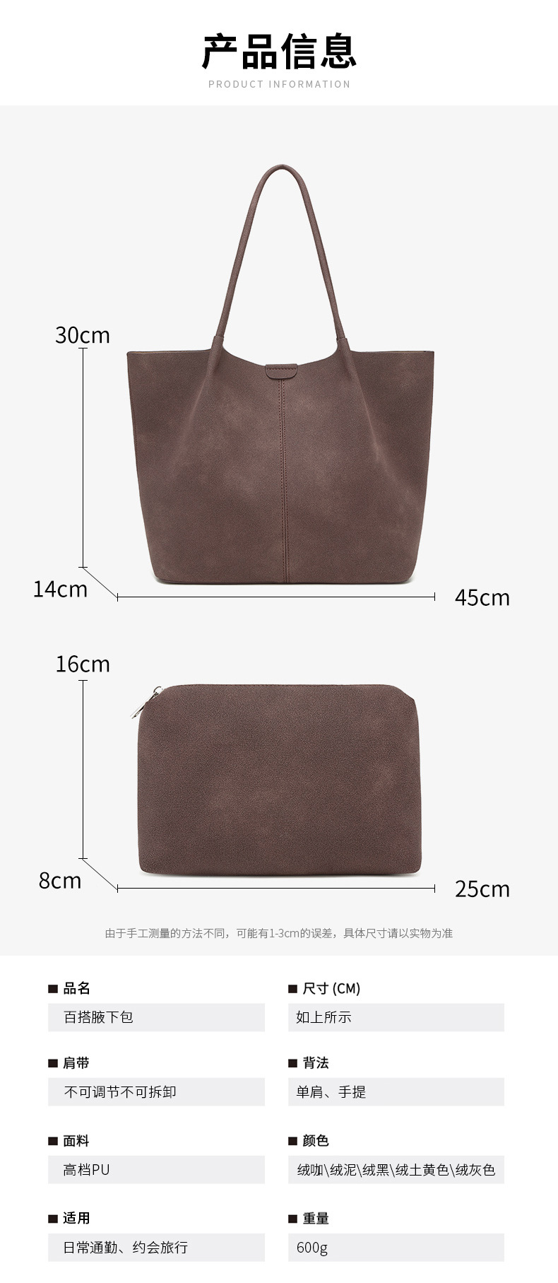 2025 autumn and winter new matte European and American large-capacity shoulder underarm tote large bag retro portable mother and child bag