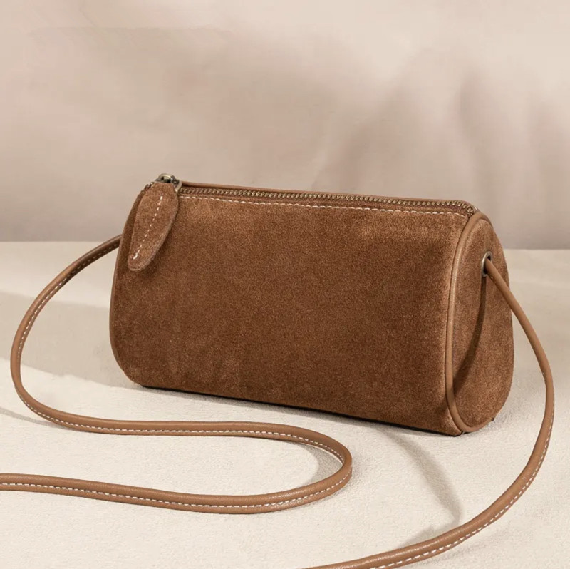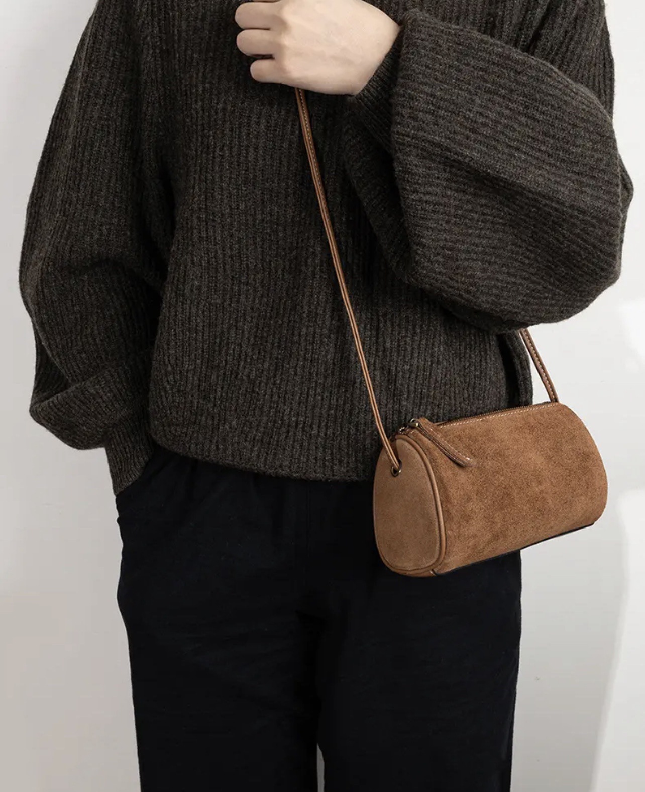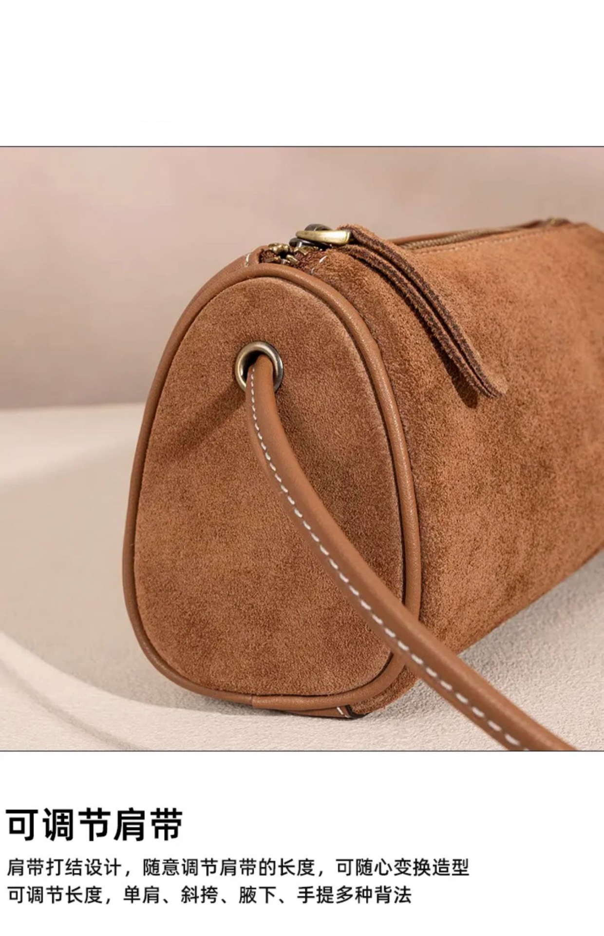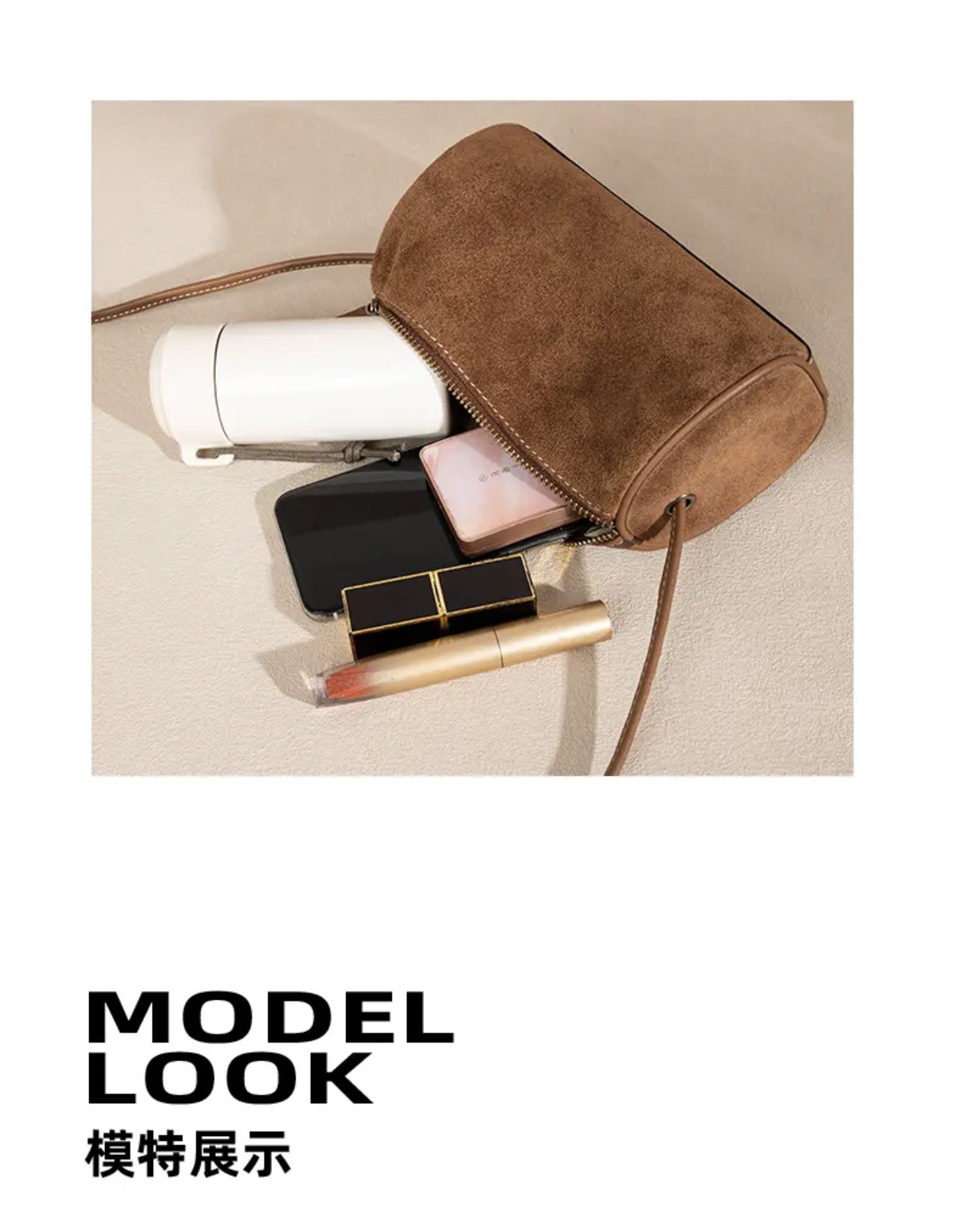 2025 autumn and winter new retro suede cylinder bag matte bag single shoulder oblique span women's bag small round bag mobile phone bag