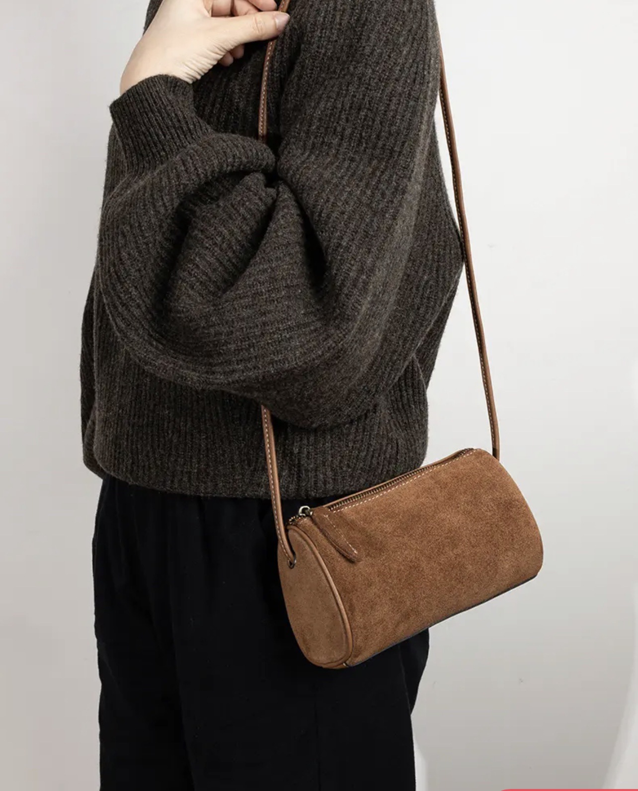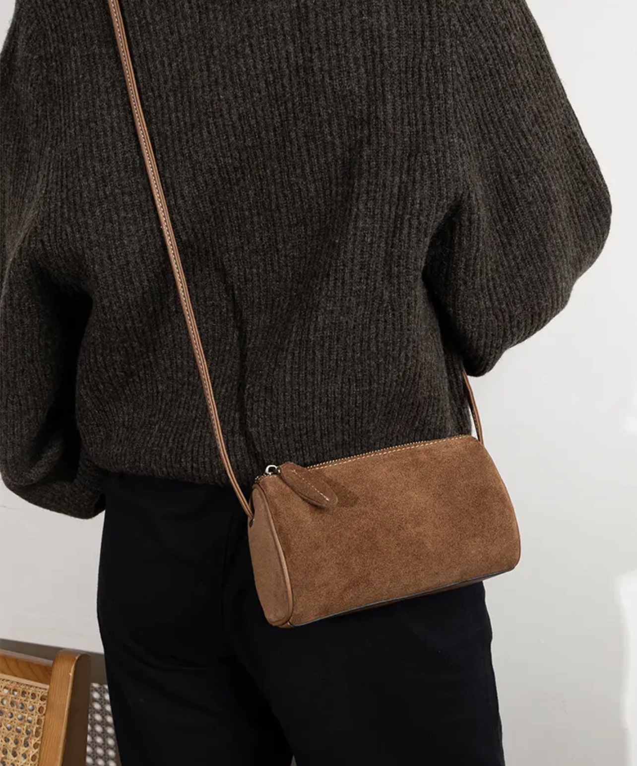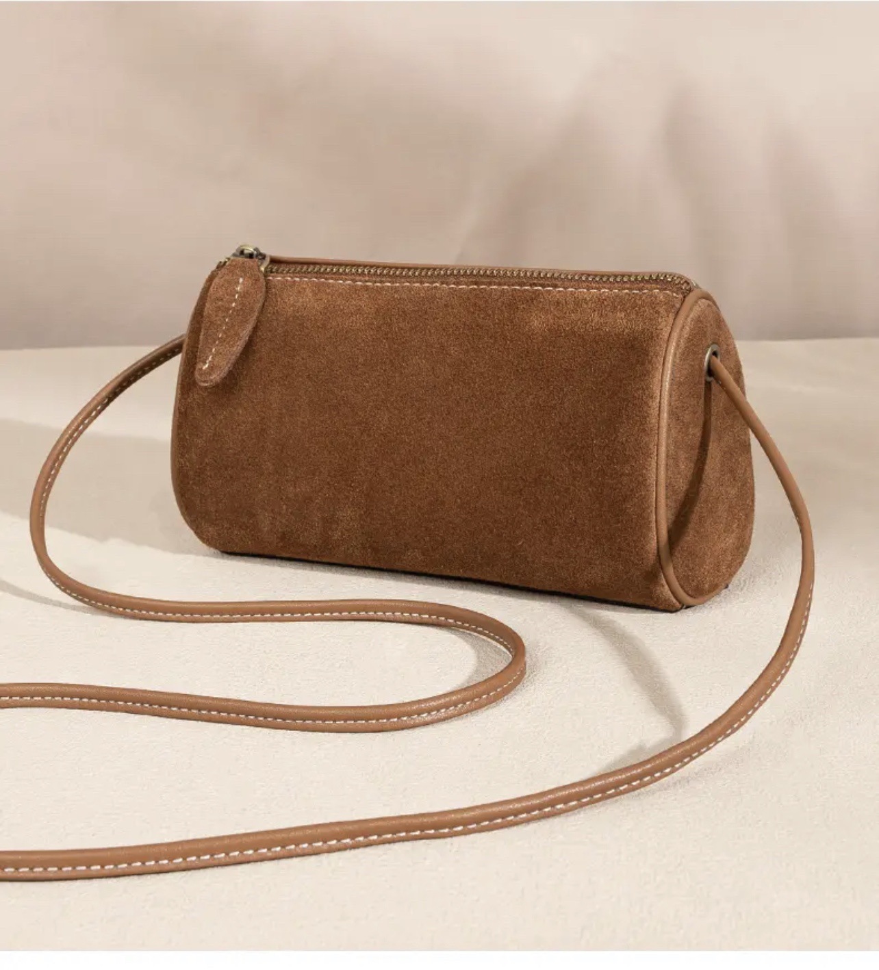 2025 autumn and winter new retro suede cylinder bag matte bag single shoulder oblique span women's bag small round bag mobile phone bag
