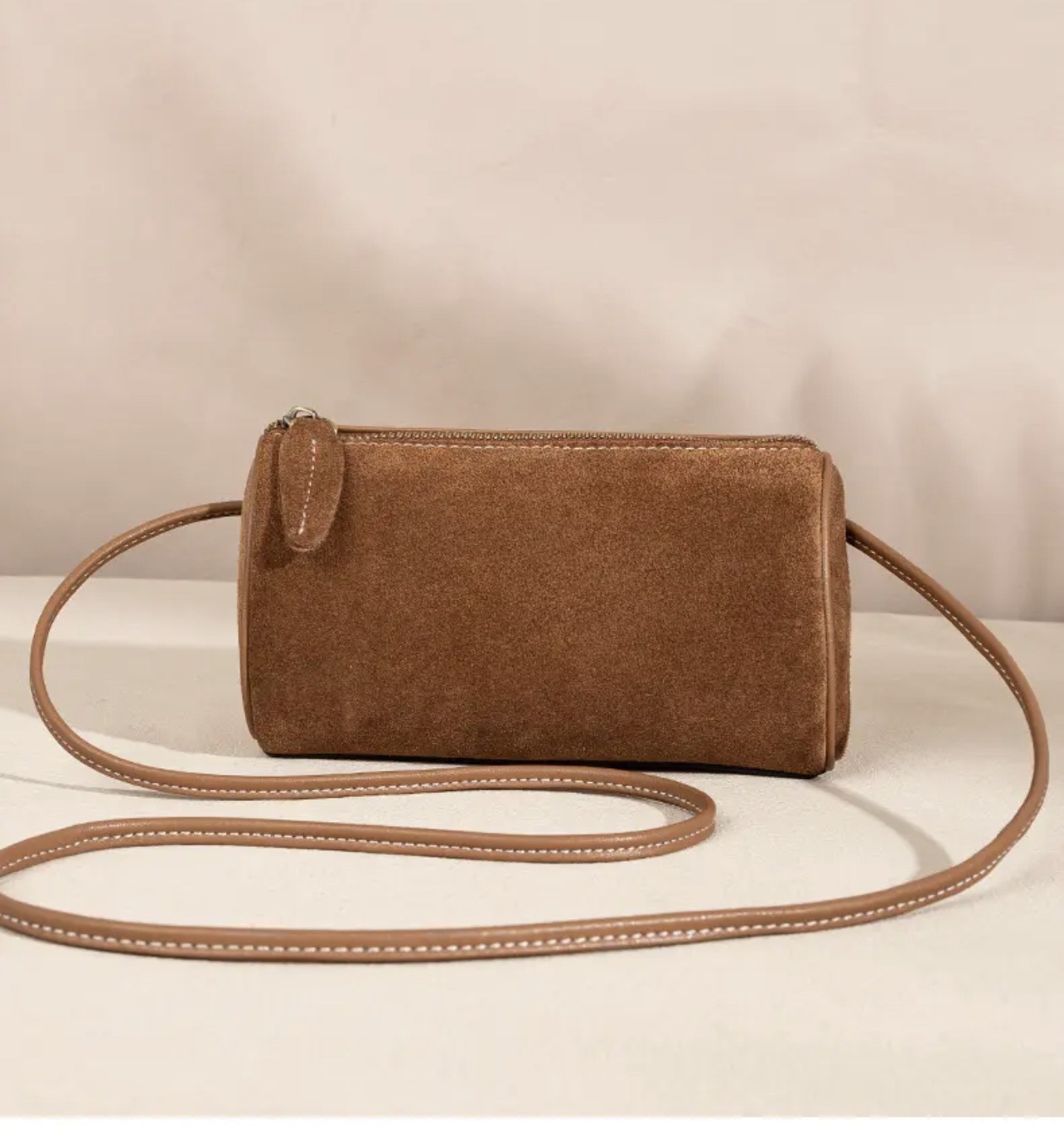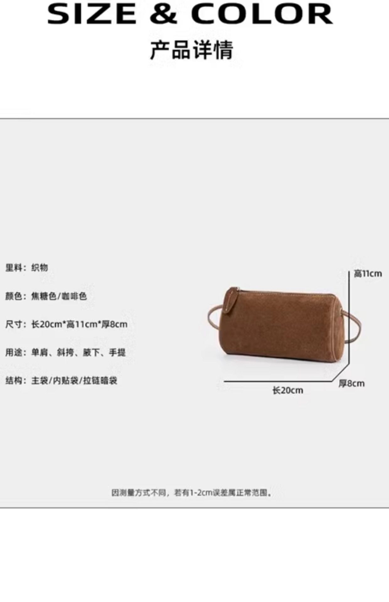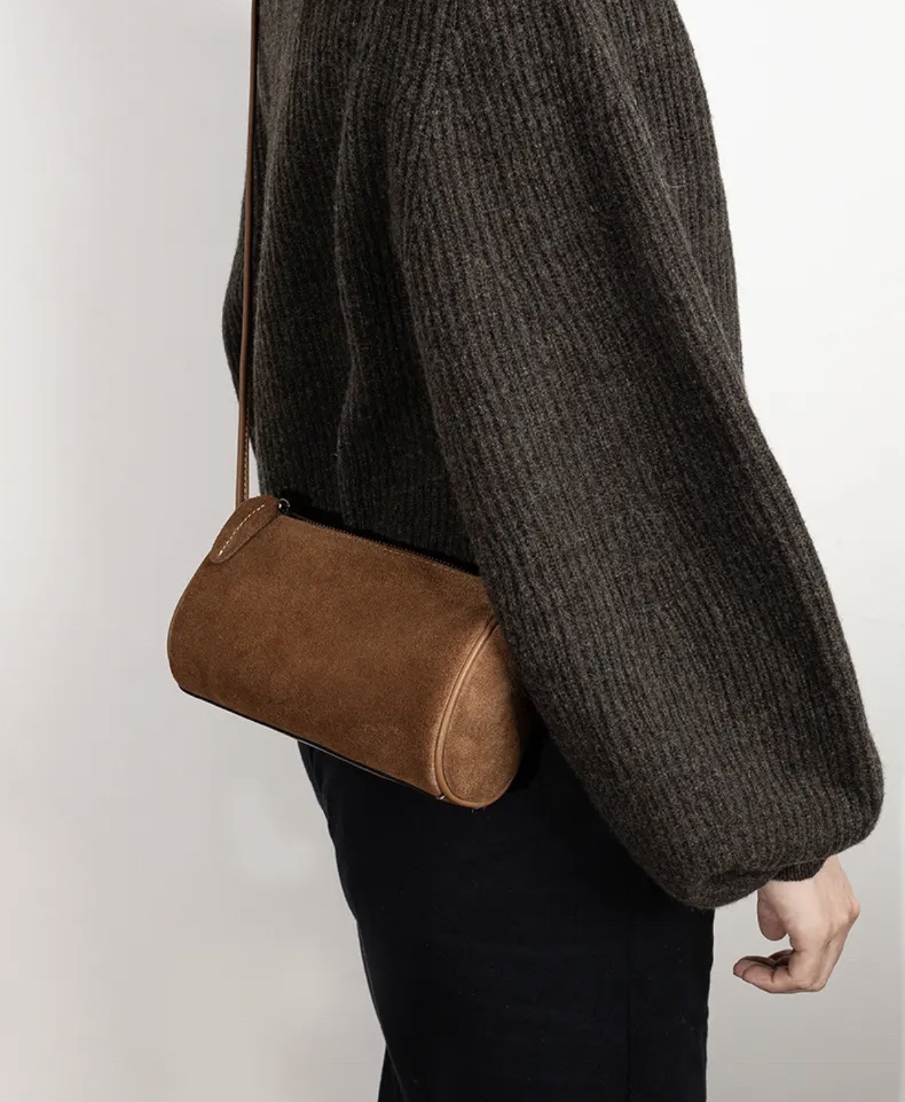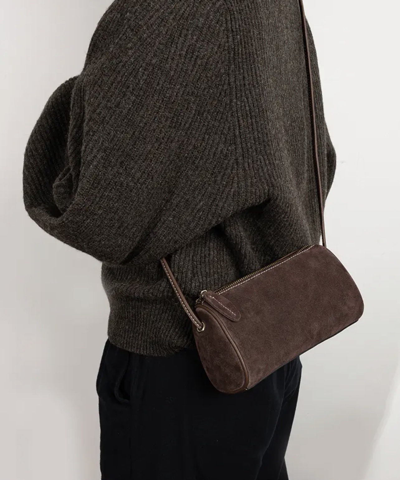 2025 autumn and winter new retro suede cylinder bag matte bag single shoulder oblique span women's bag small round bag mobile phone bag