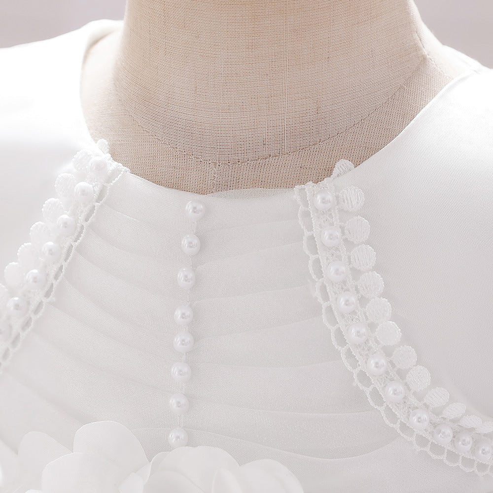 Amazon outer order infant dress princess dress small flying sleeve bead applique tutu wedding flower girl dress