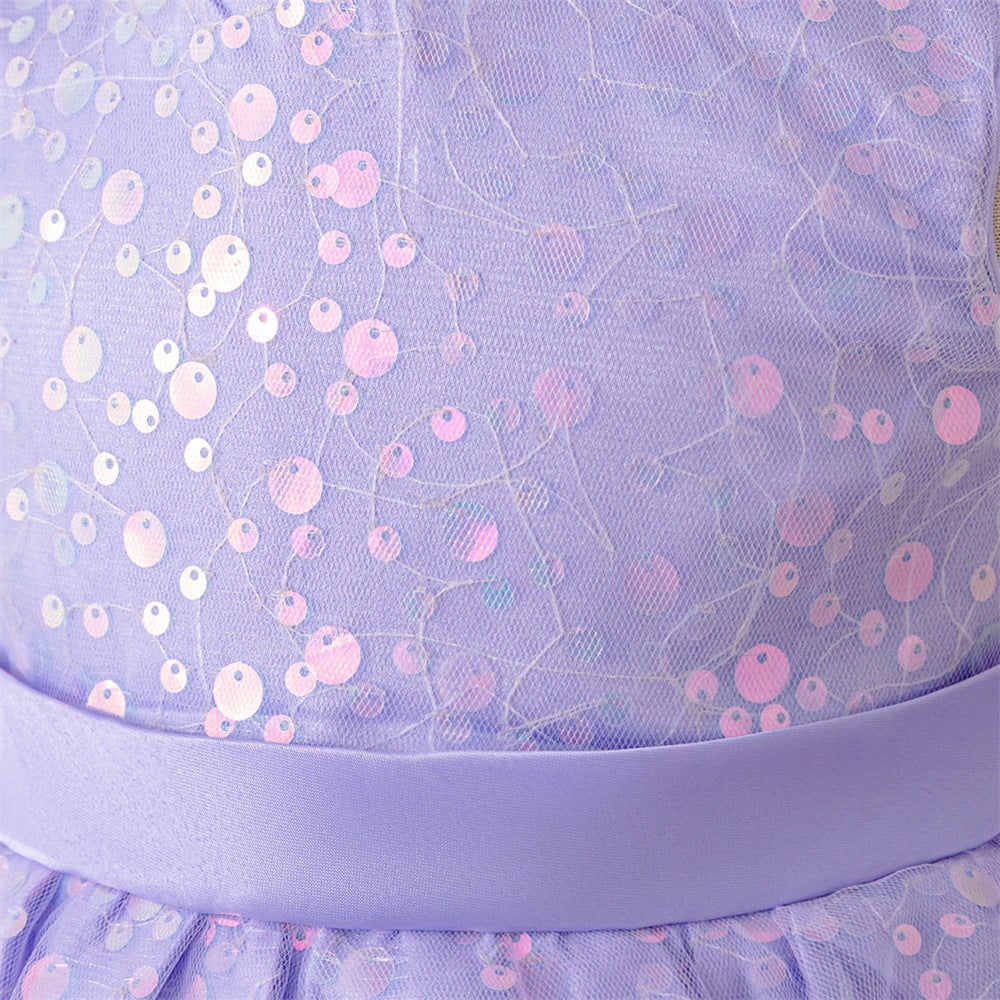 Amazon's new children's dress sleeveless bead splicing mesh tutu skirt baby one-year-old wedding flower girl dress