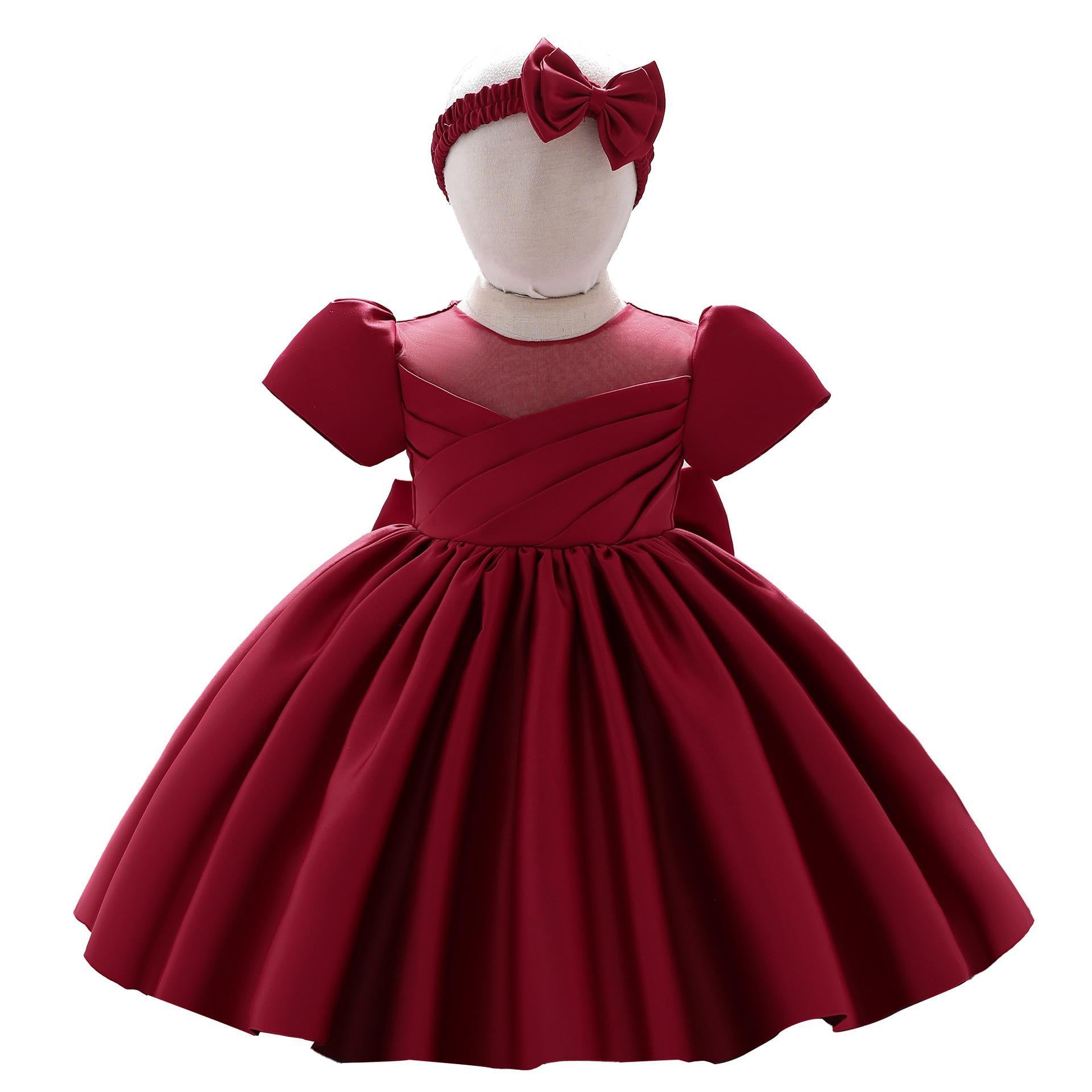 Amazon's new short-sleeved children's dress skirt, hair accessories, big bow girls' birthday party birthday dress