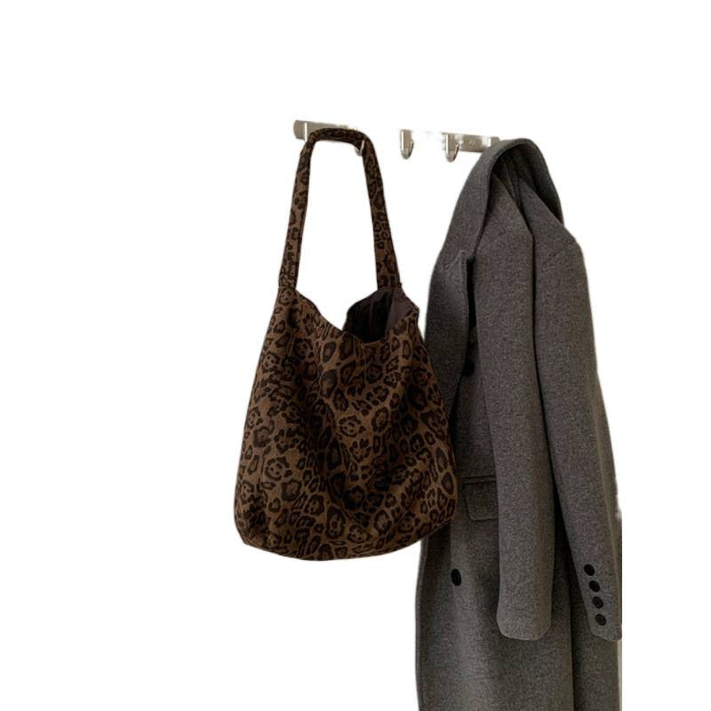 Autumn and winter suede leopard print bag women's 2025 new trendy fashion versatile retro casual commuter shoulder tote bag