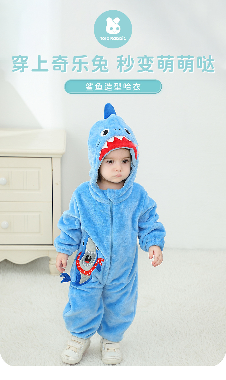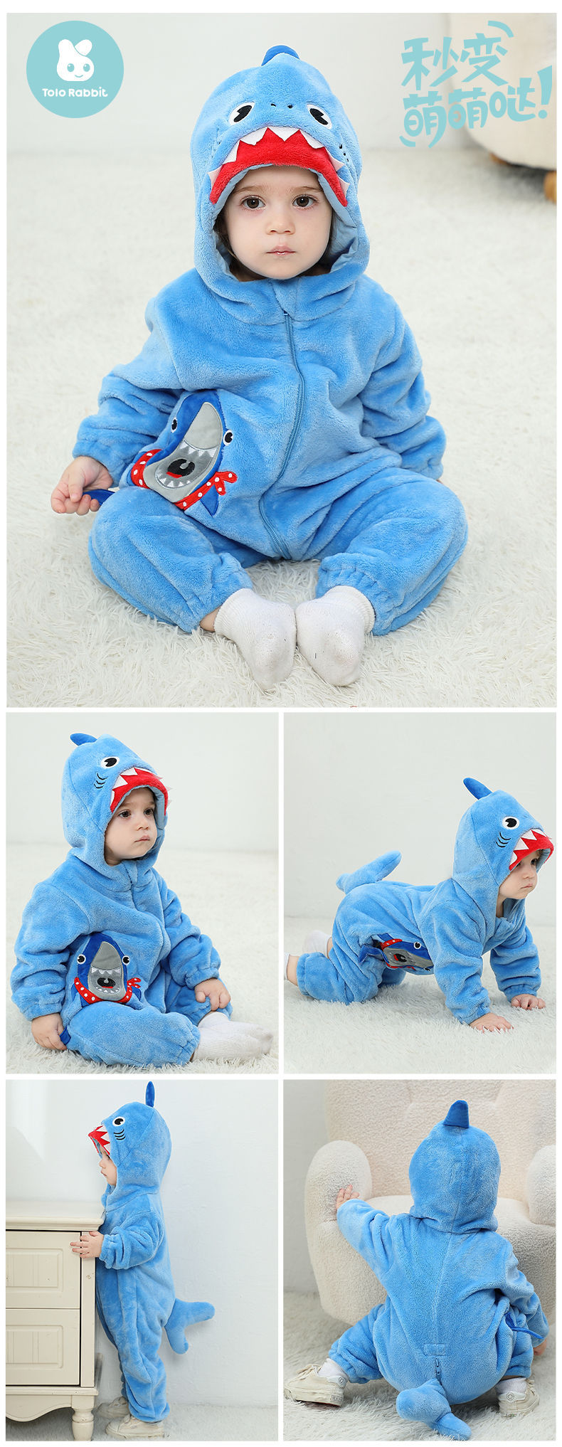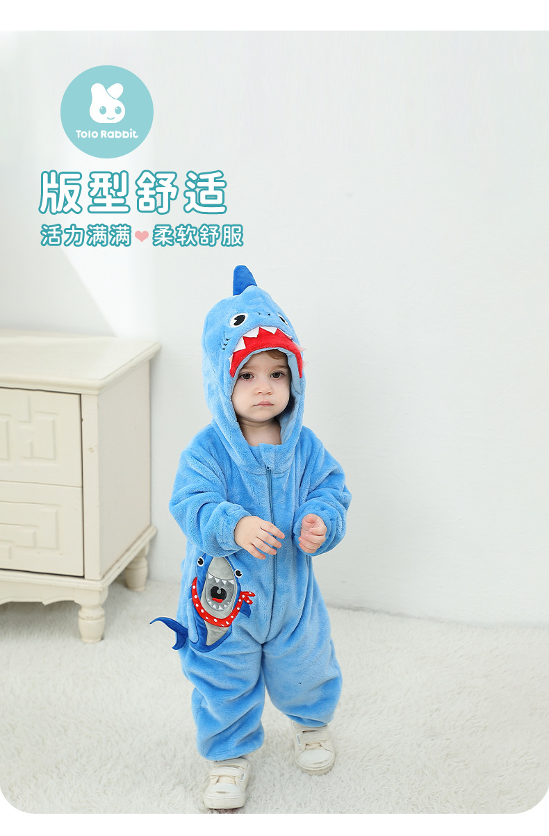 Autumn new 0-3 year old baby comfortable flannel animal shape onesie shark shape onesie