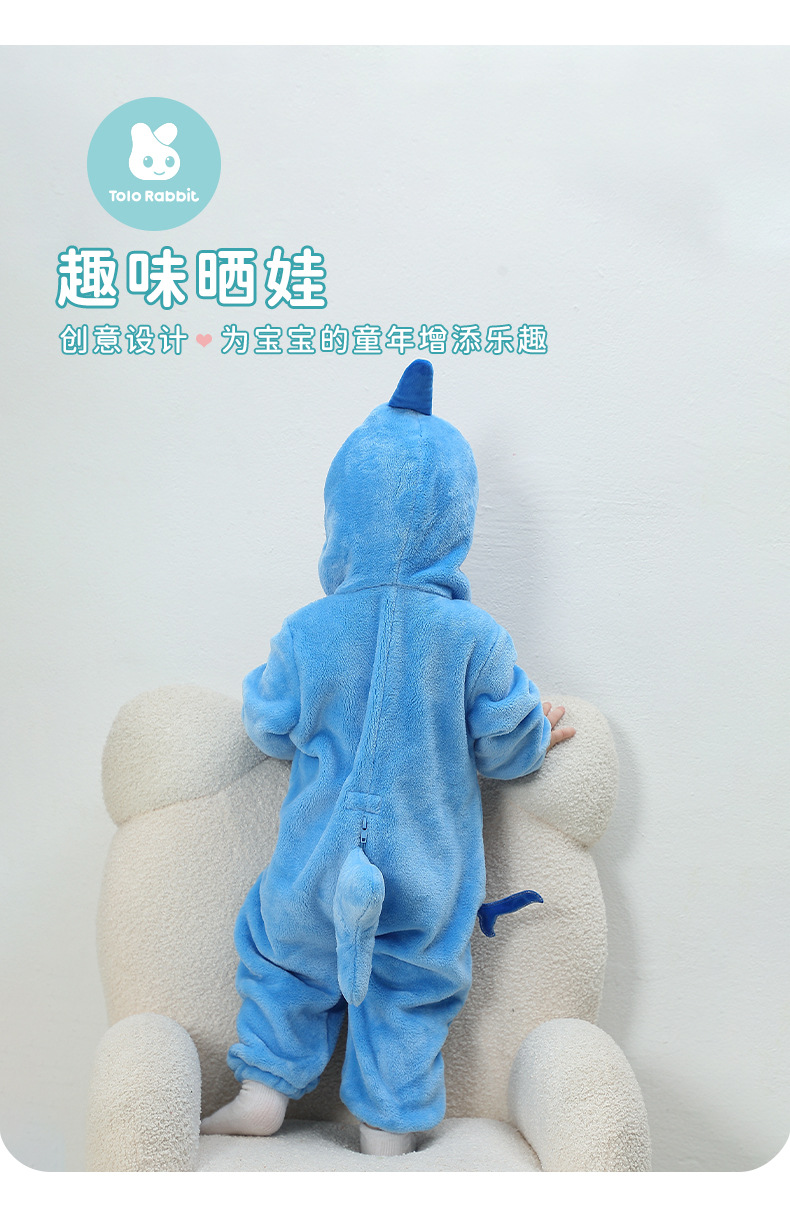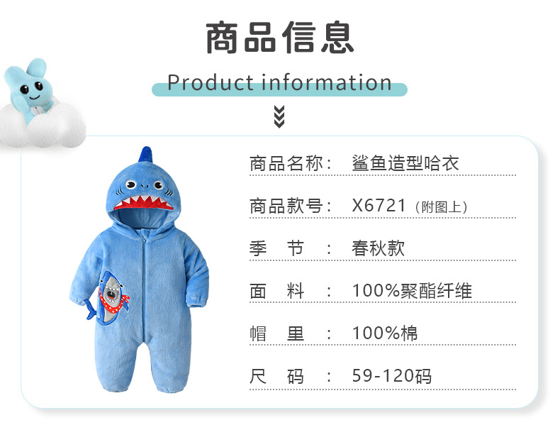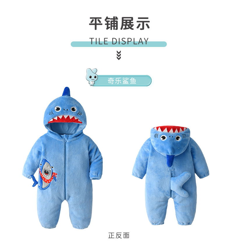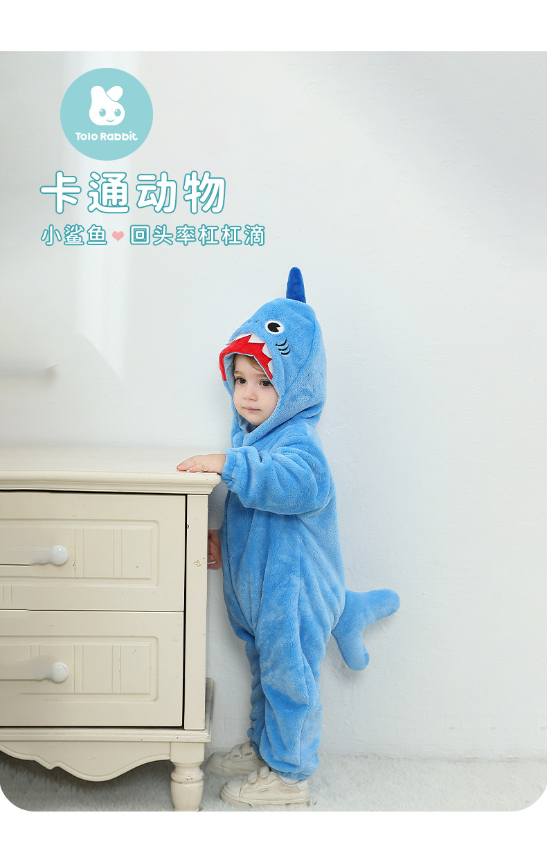 Autumn new 0-3 year old baby comfortable flannel animal shape onesie shark shape onesie