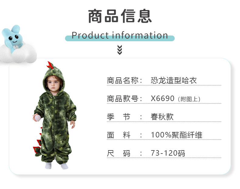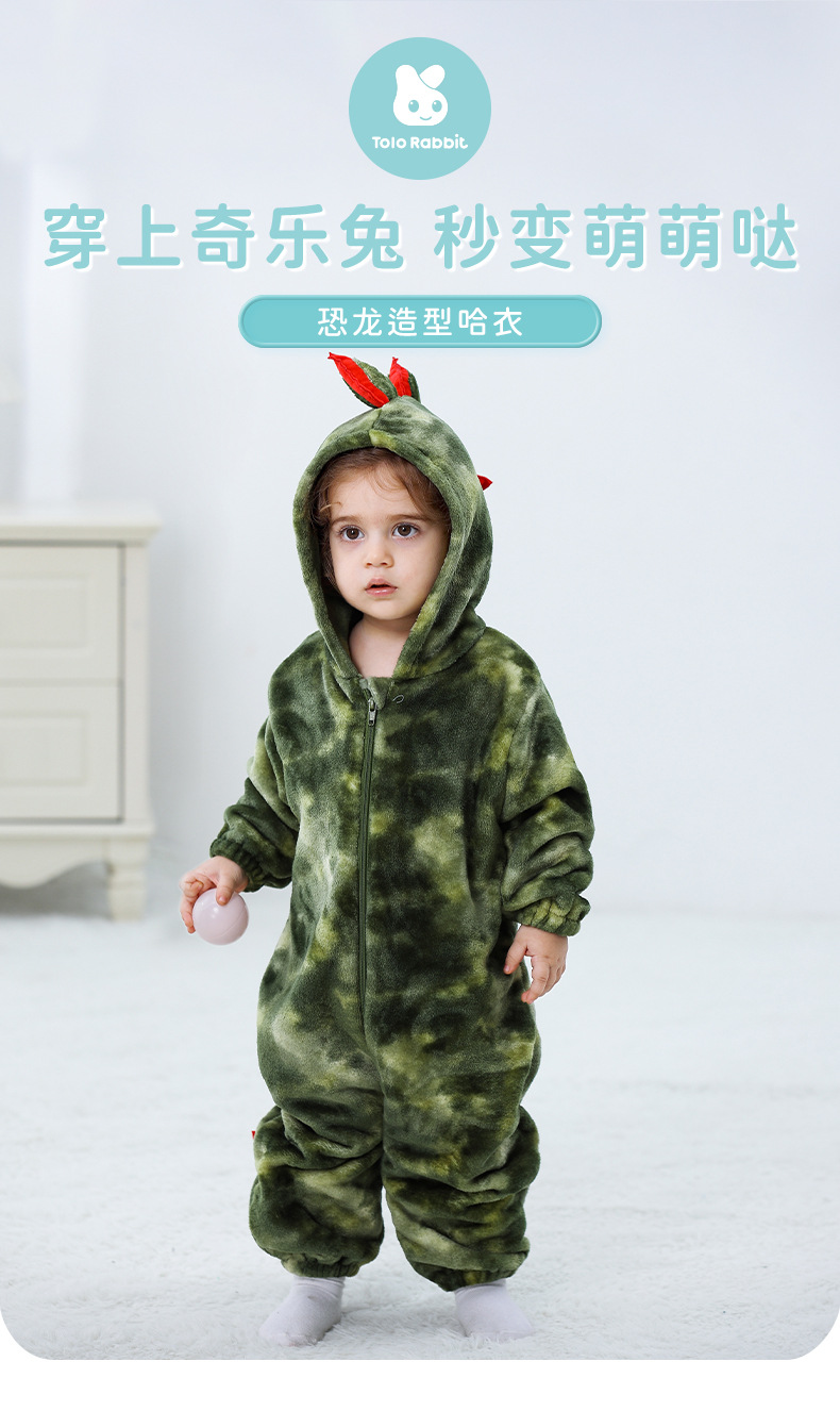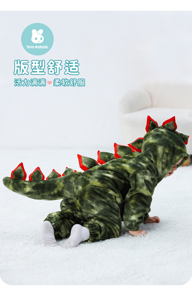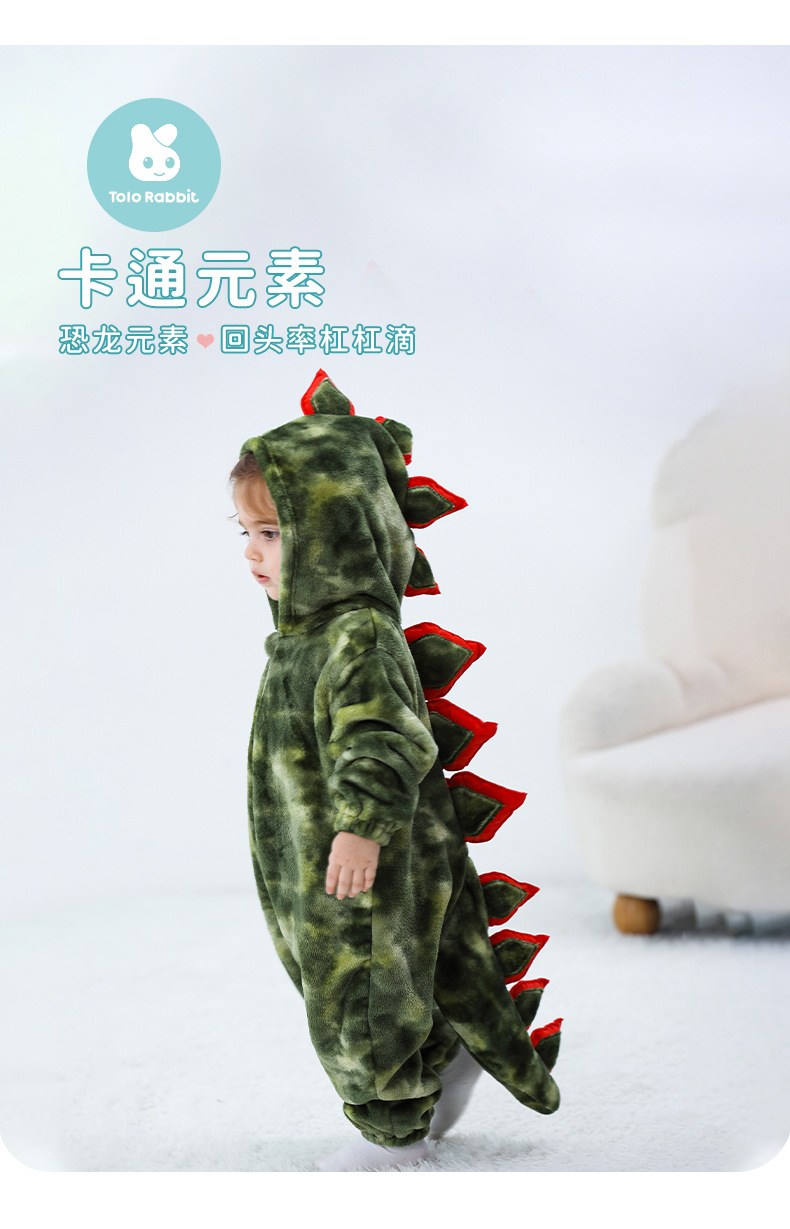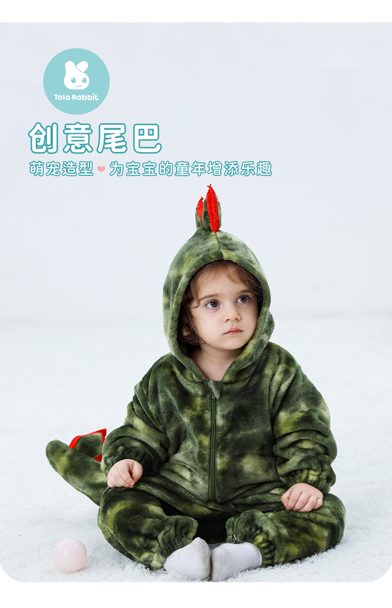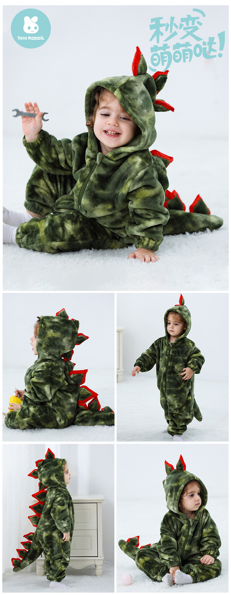 Autumn new 0-3 year old baby flannel single-layer modeling Romper dinosaur modeling one-piece Romper climbing suit