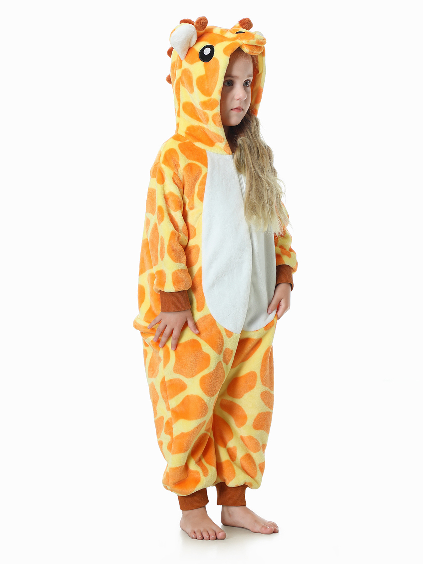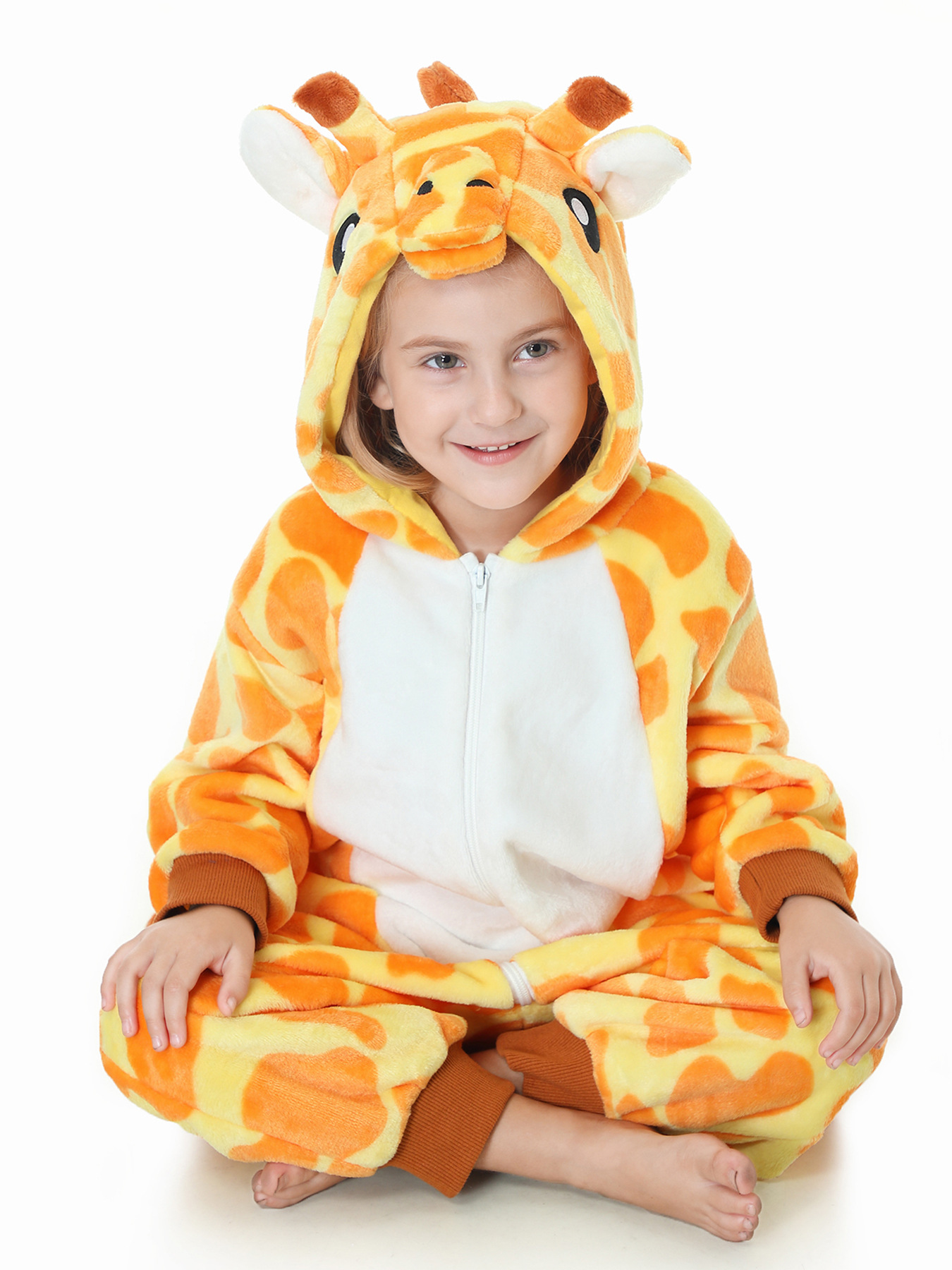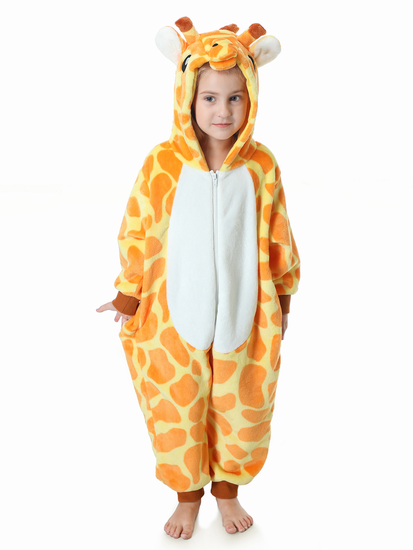 Autumn new children's cartoon styling clothes flannel single-layer cute giraffe spring and autumn styling onesie