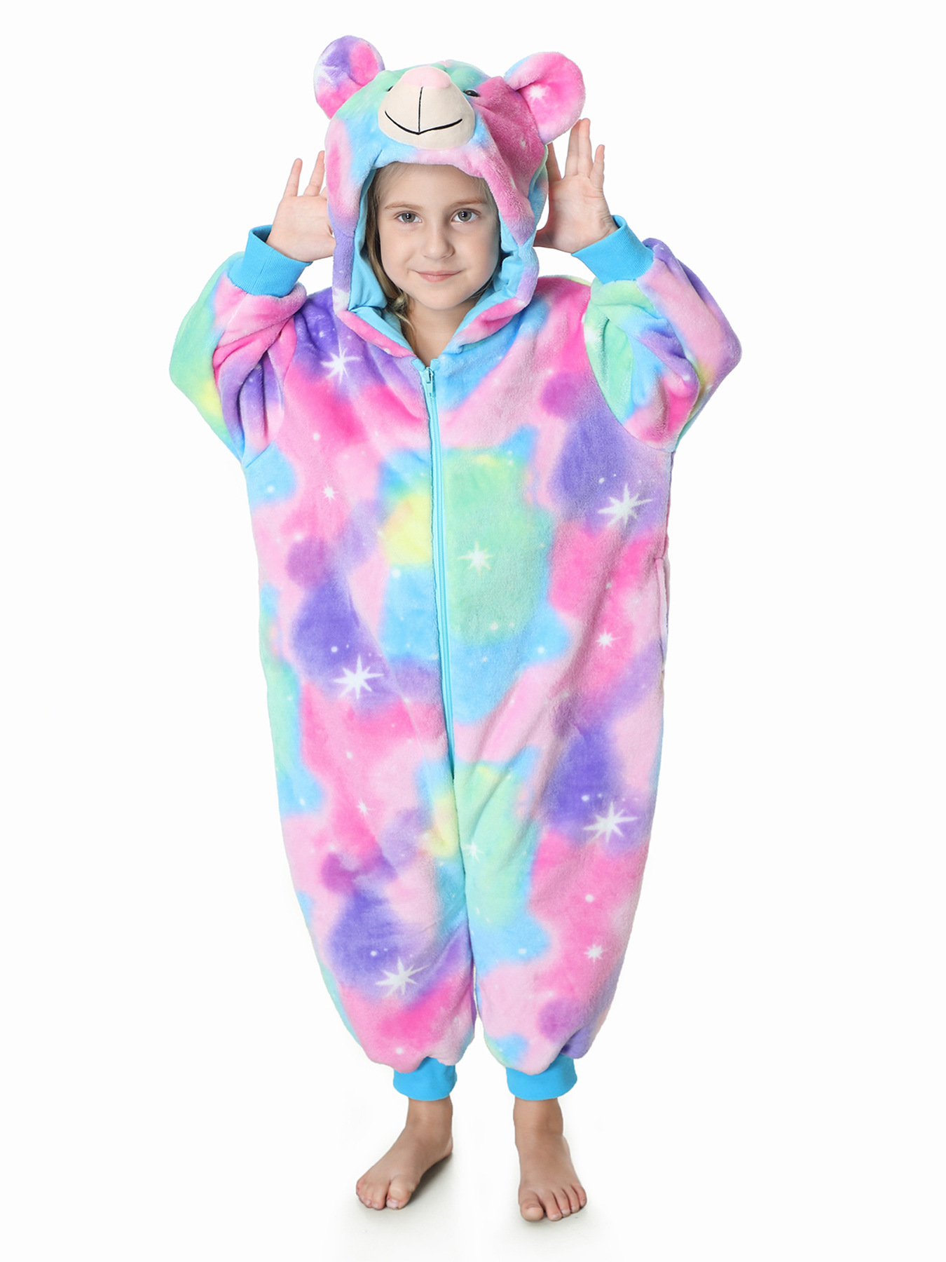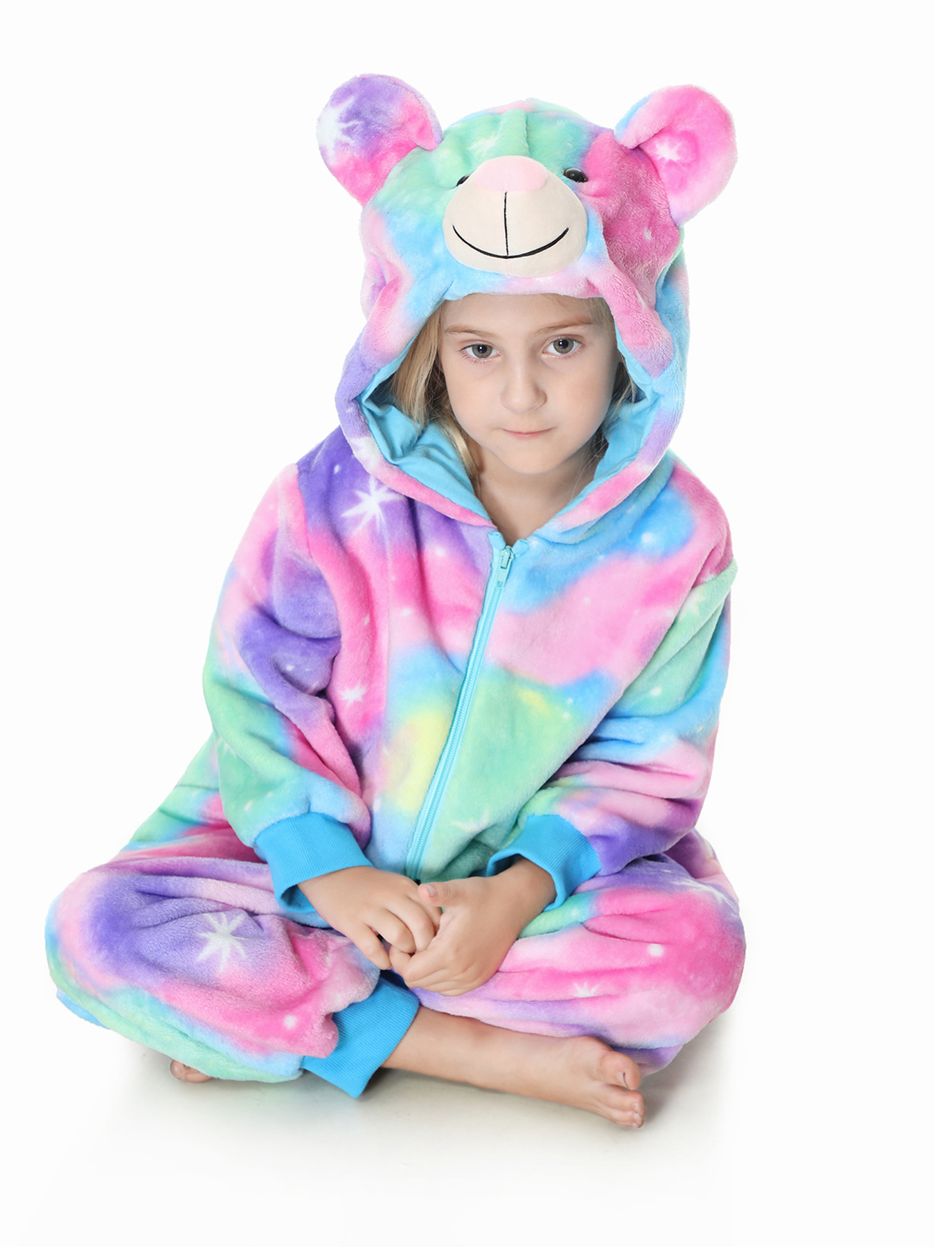 Autumn new children's cartoon styling clothes flannel single-layer cute rainbow bear styling onesie