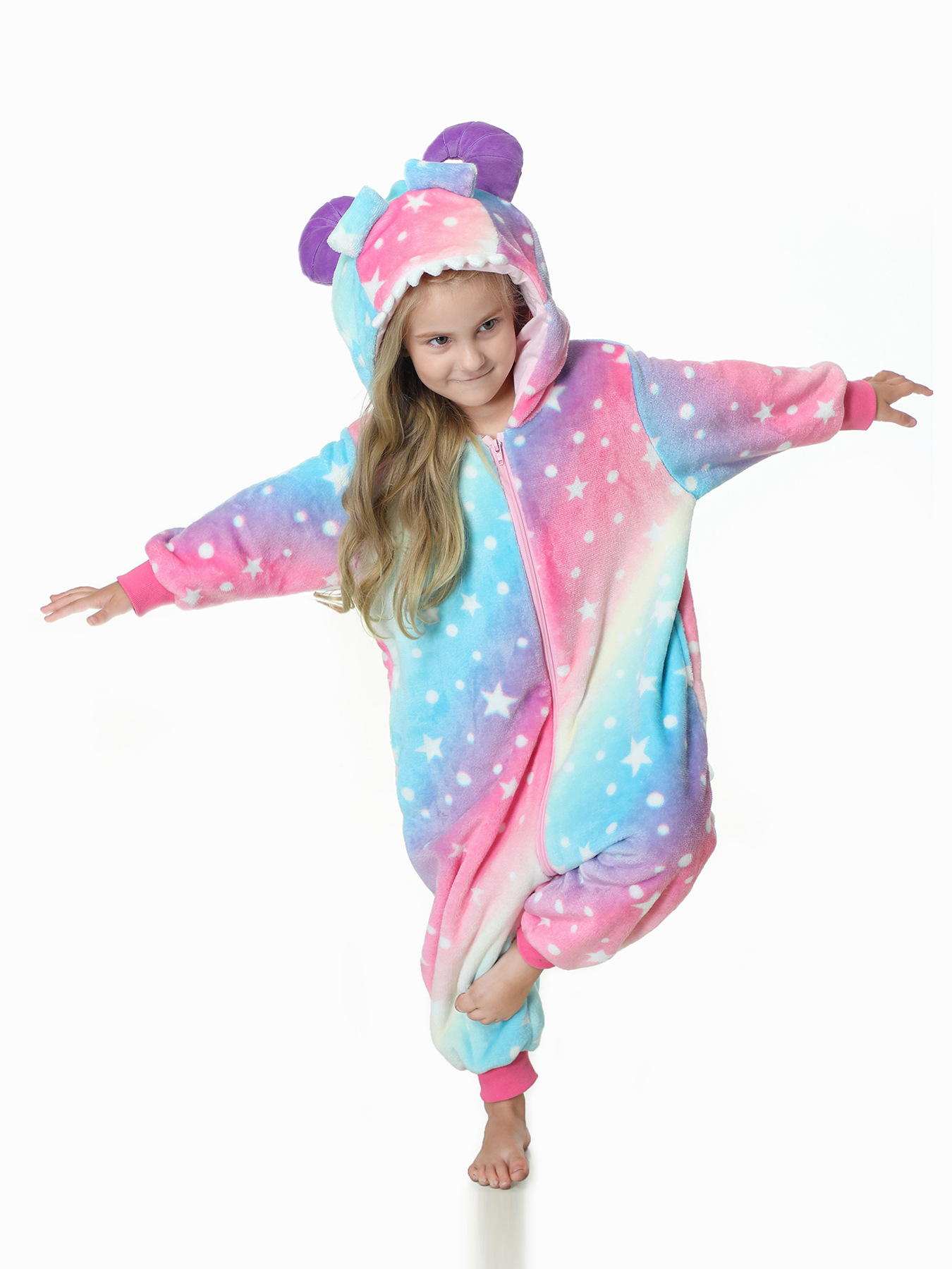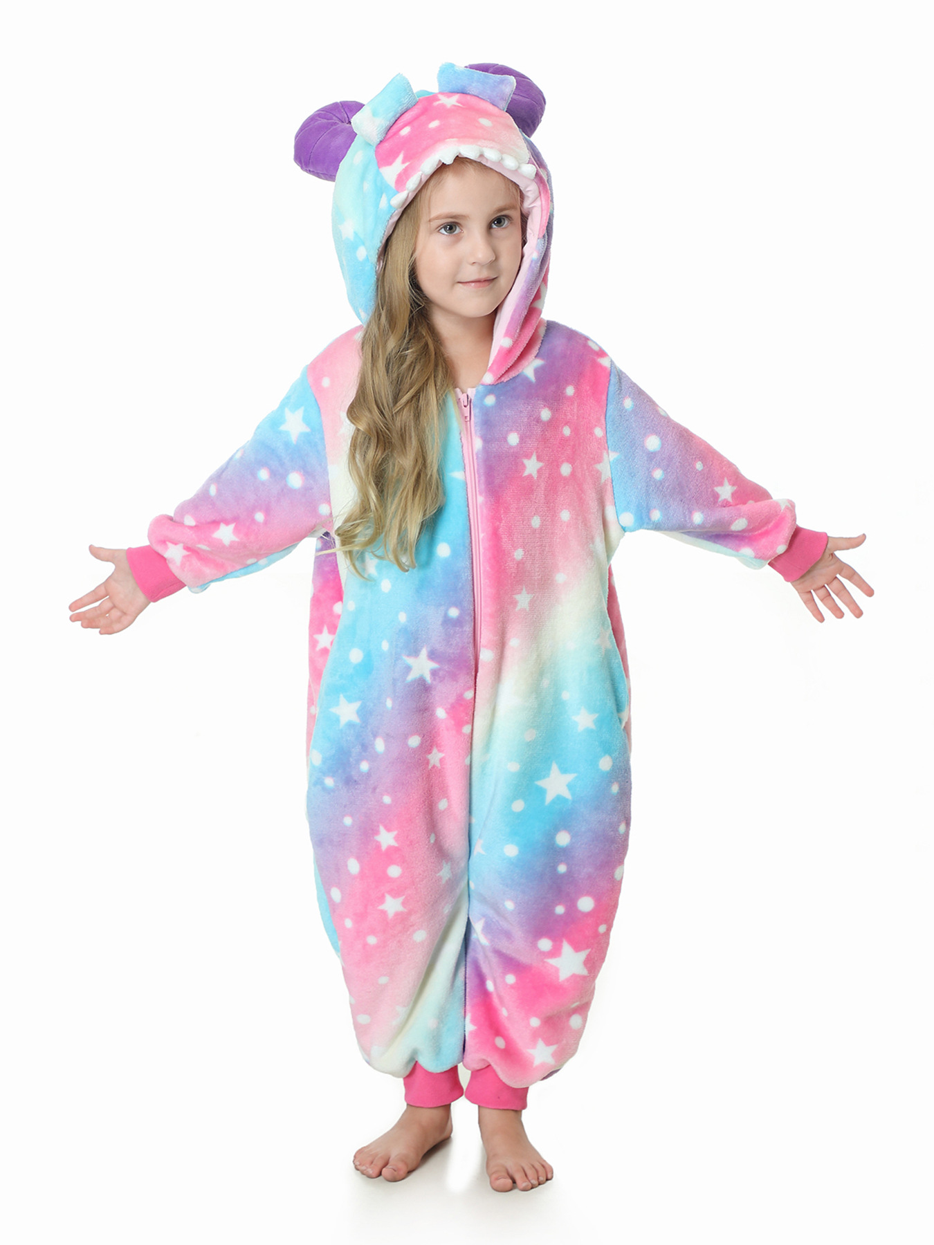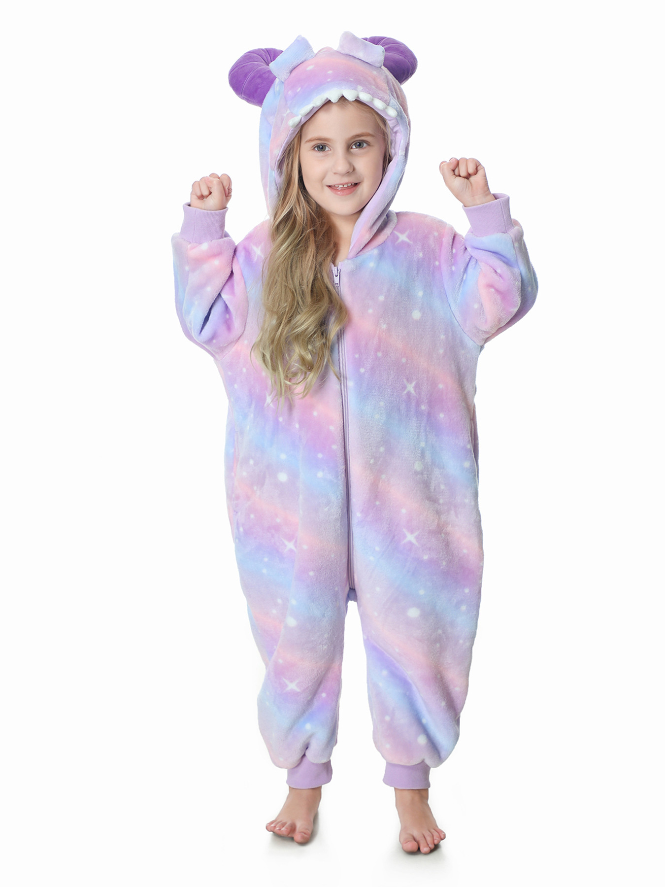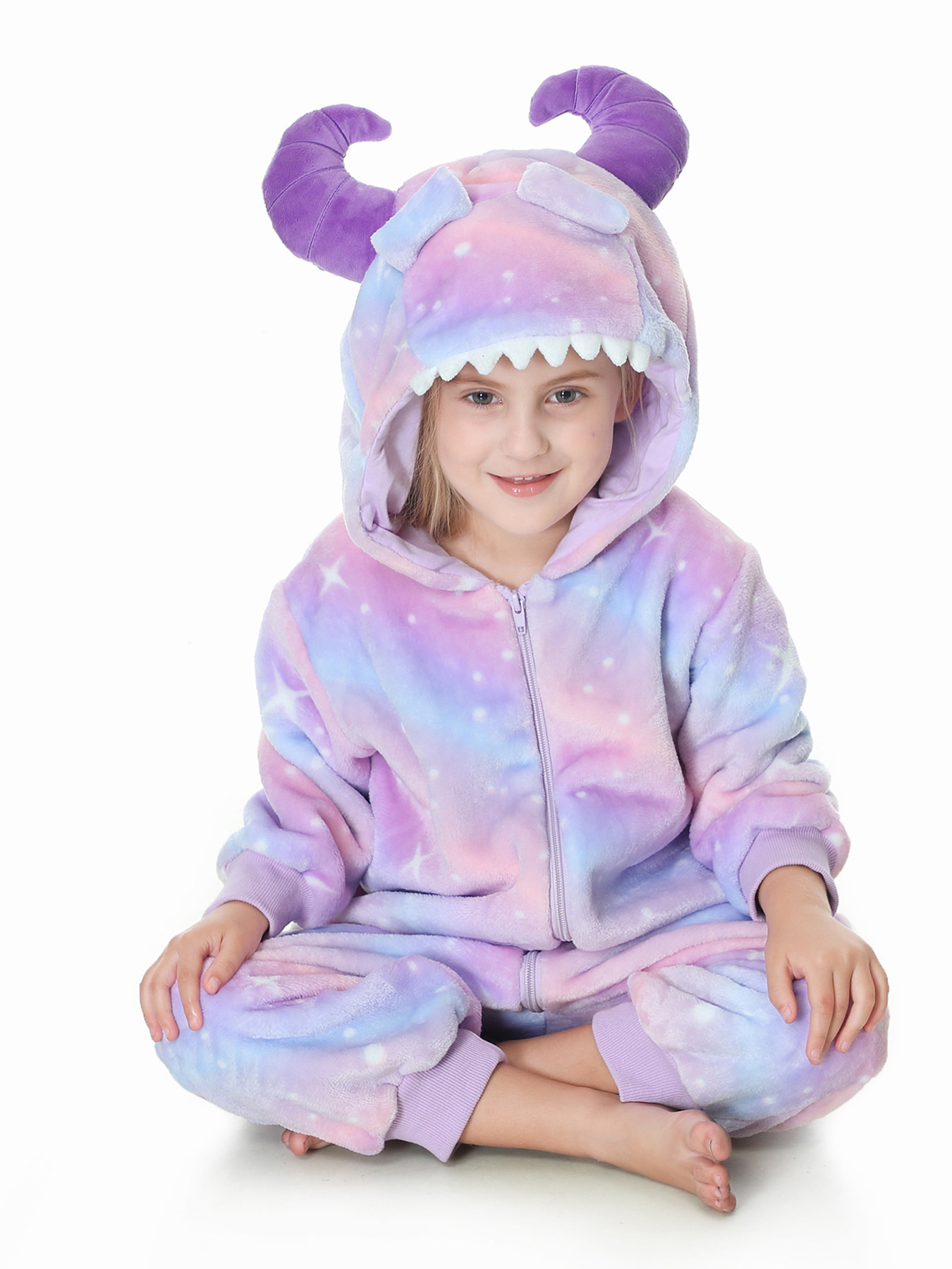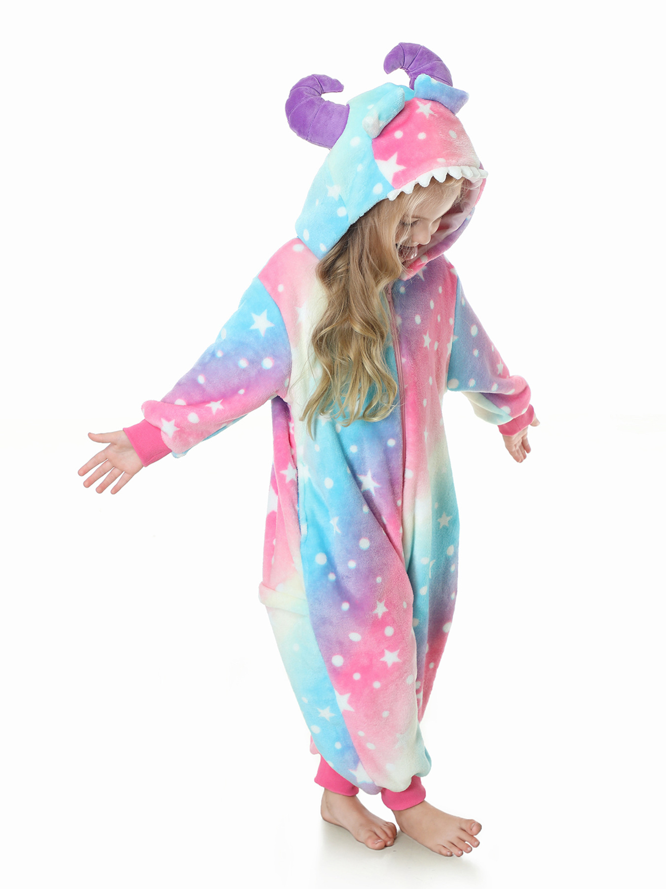 Autumn new children's cartoon styling clothes flannel single-layer cute rainbow monster styling onesie