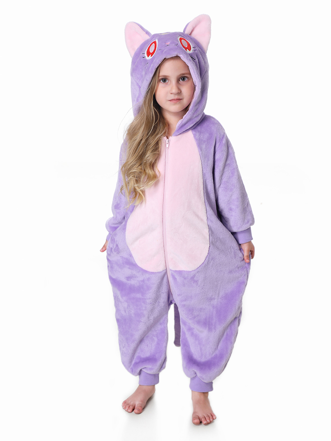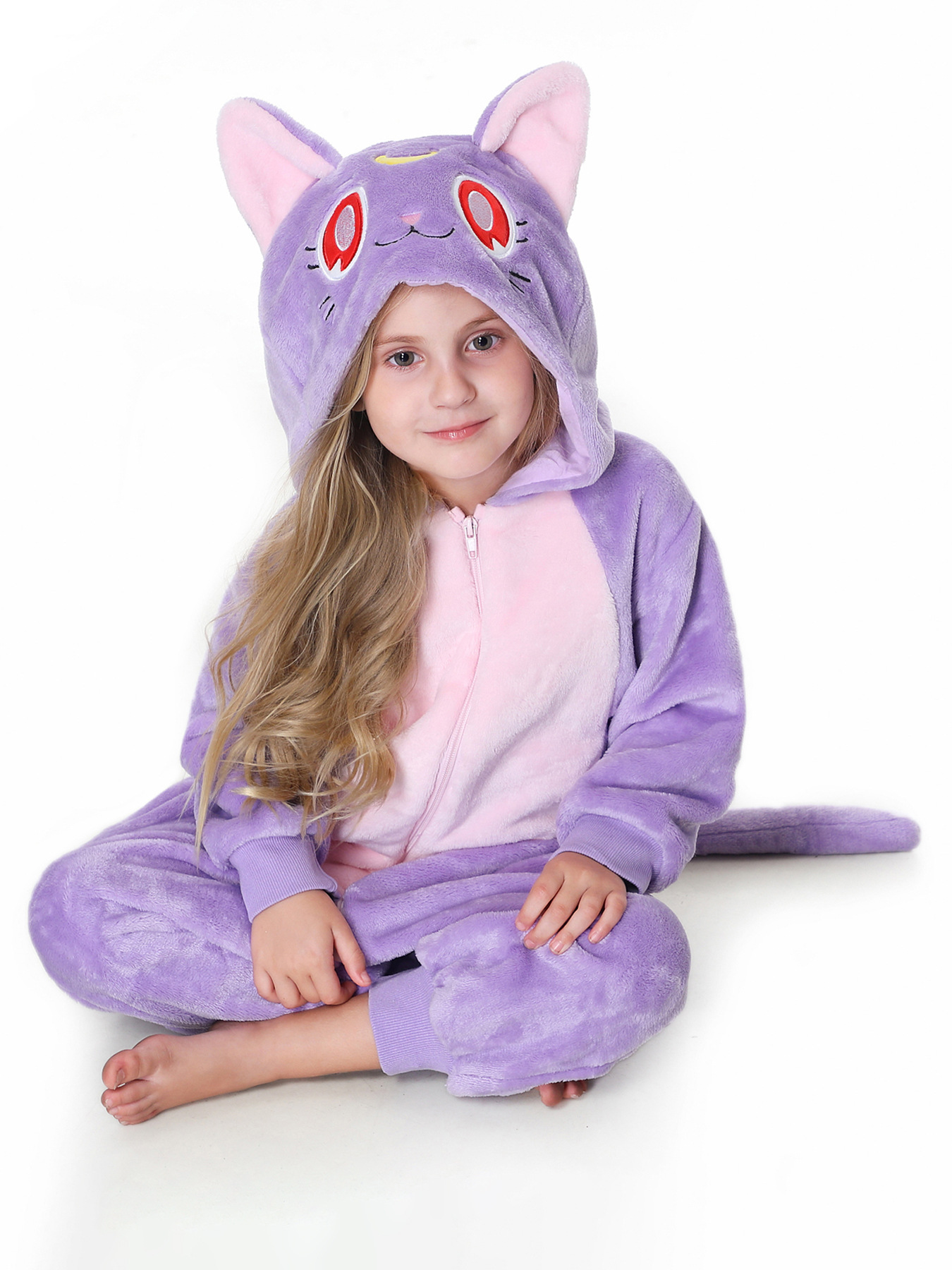 Autumn new children's cartoon styling clothes flannel single-layer elf cat hooded onesie