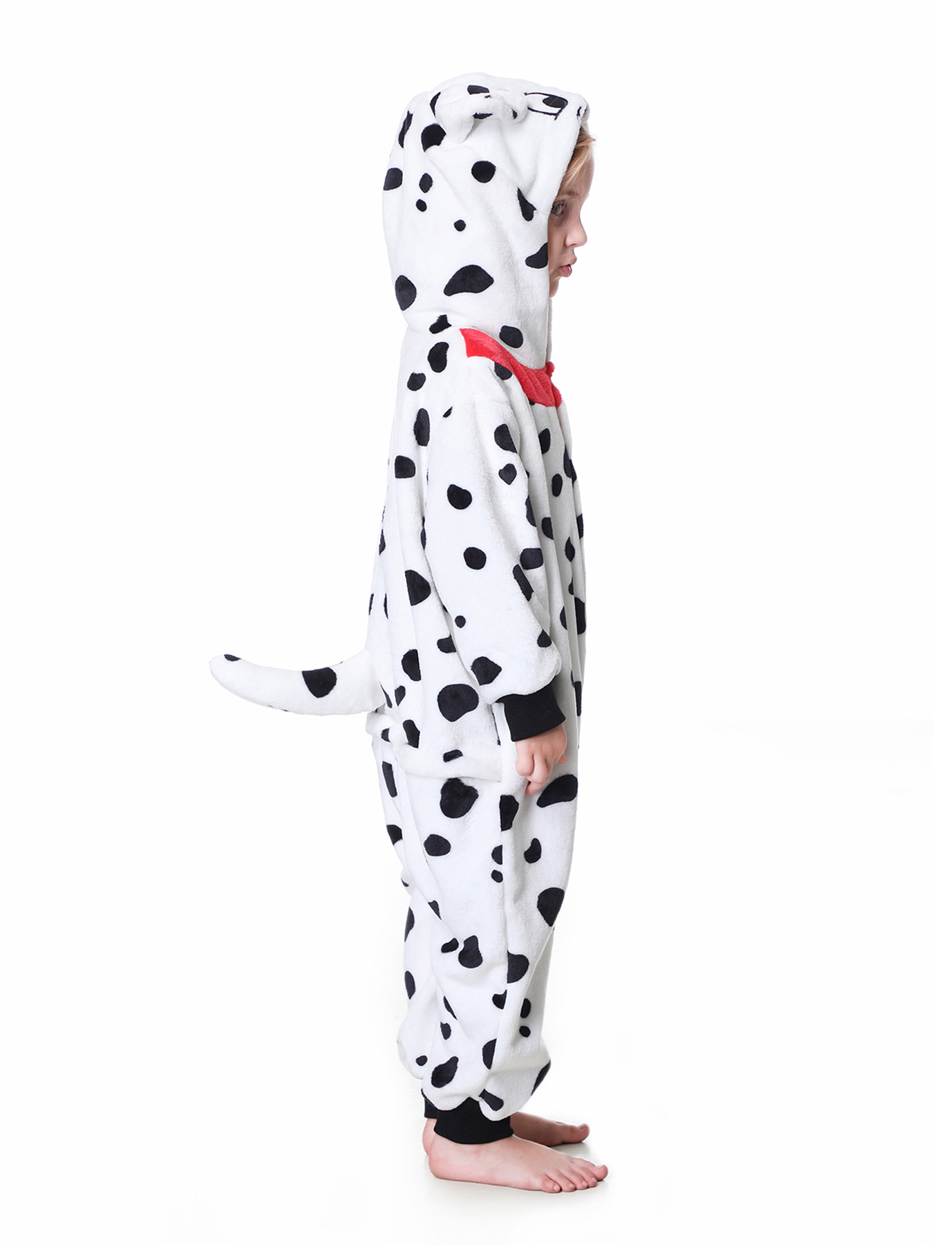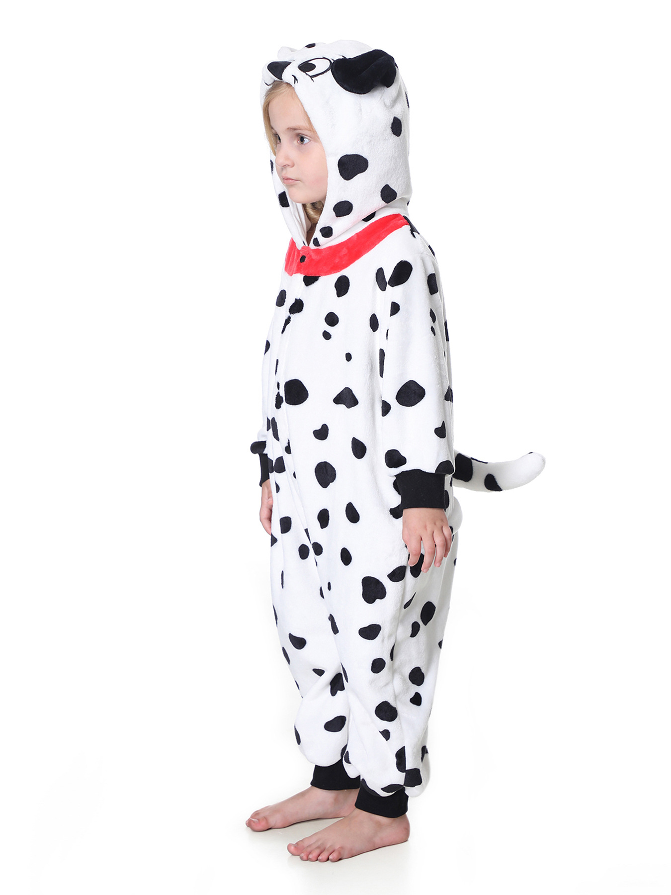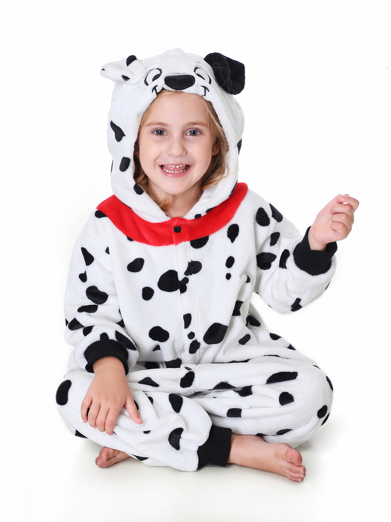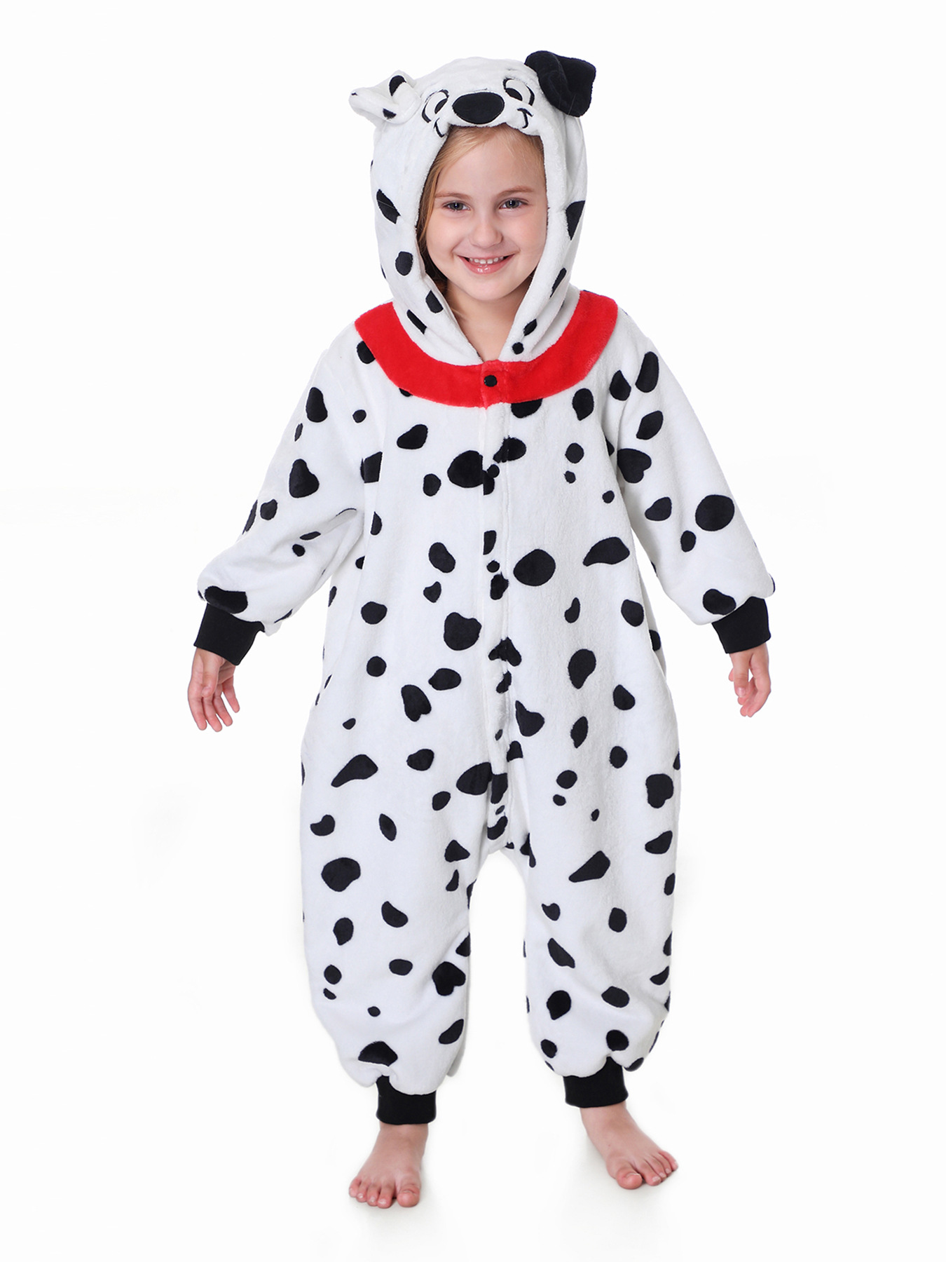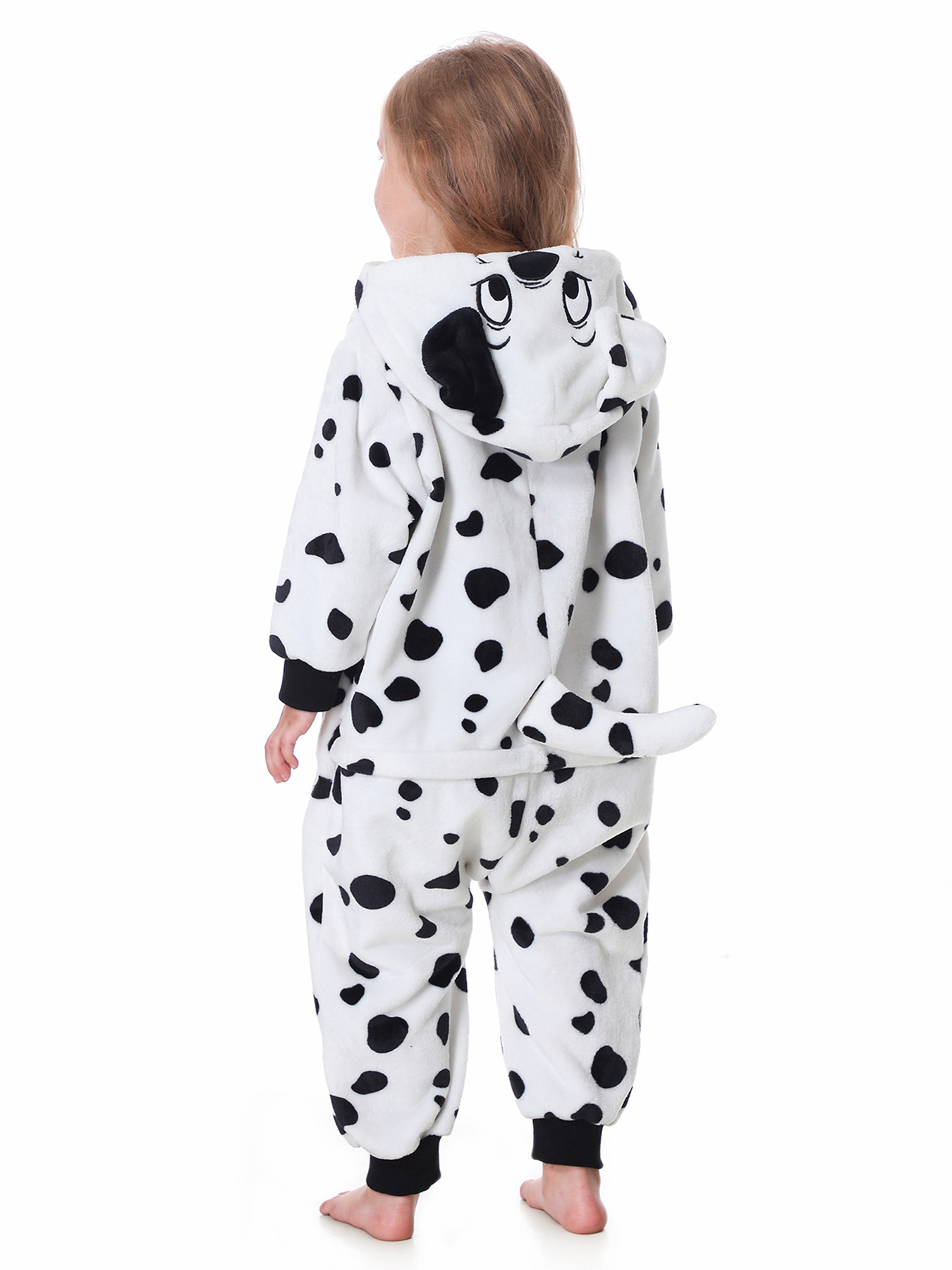 Autumn new children's cartoon styling clothes flannel single-layer spotted dog hooded onesie
