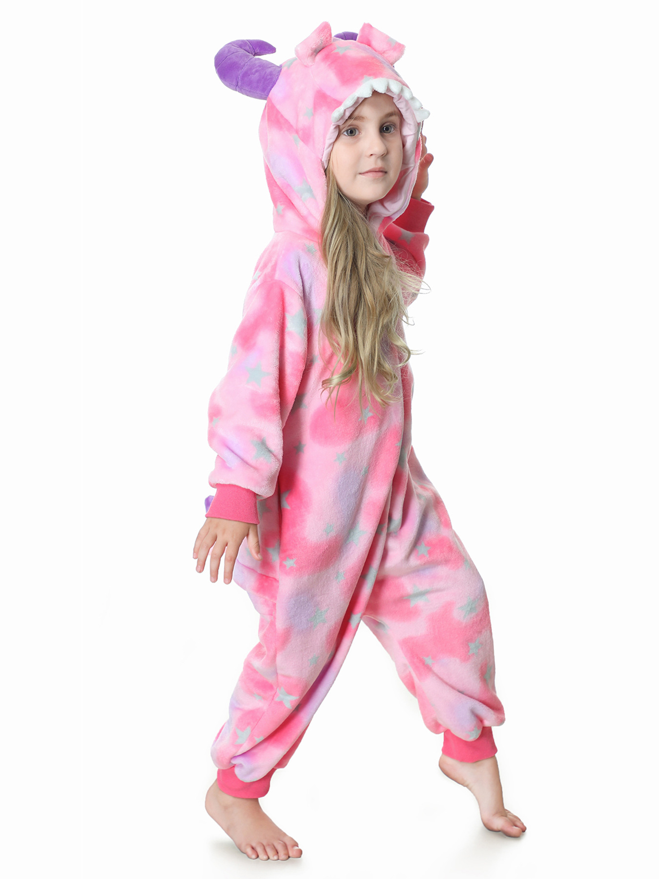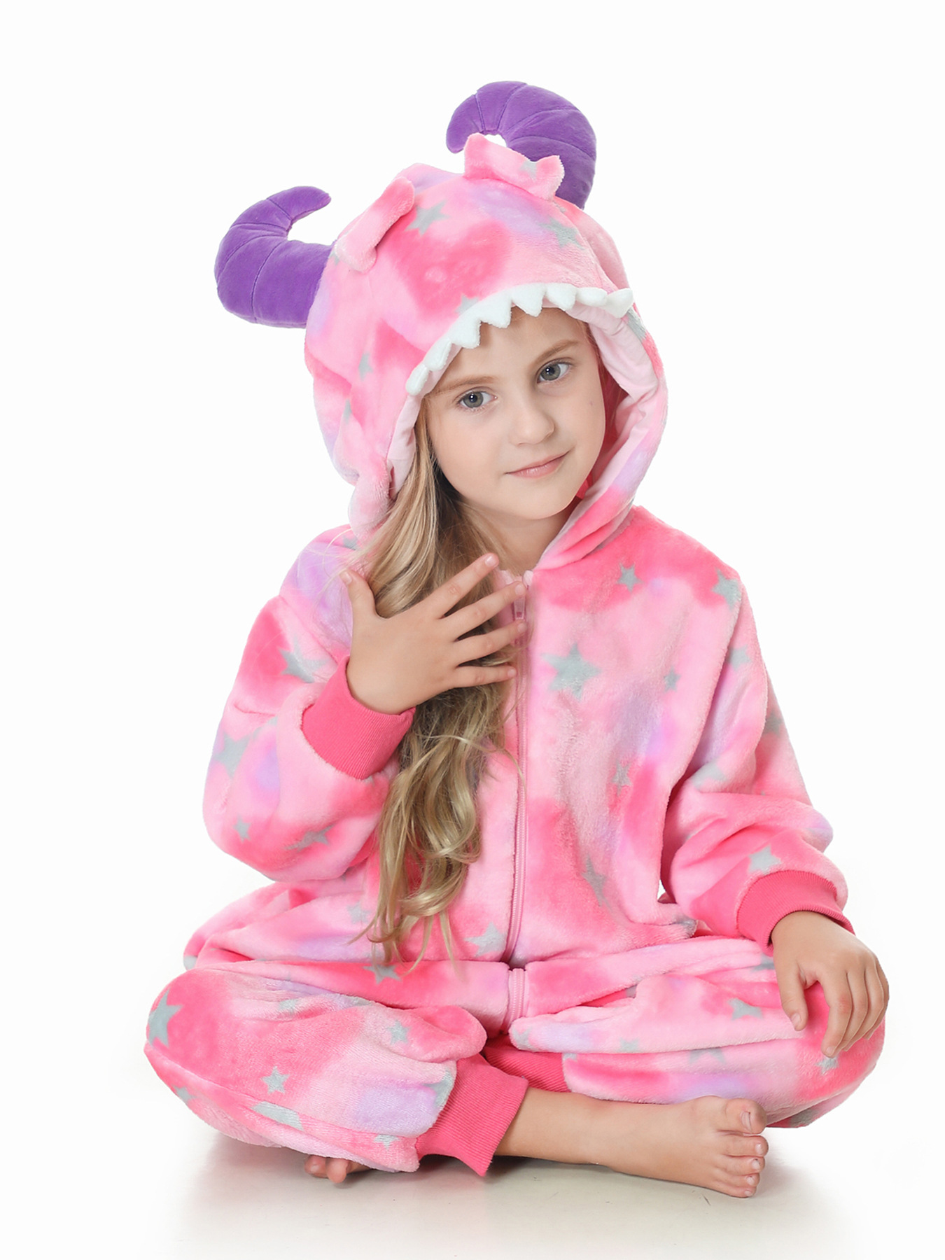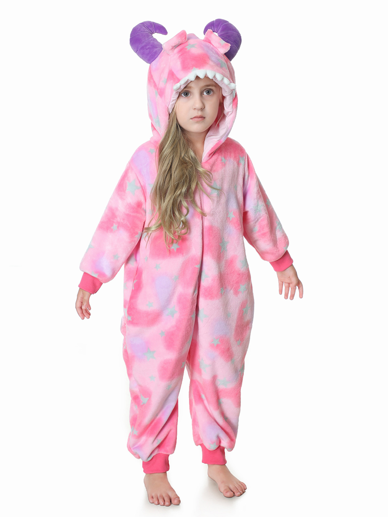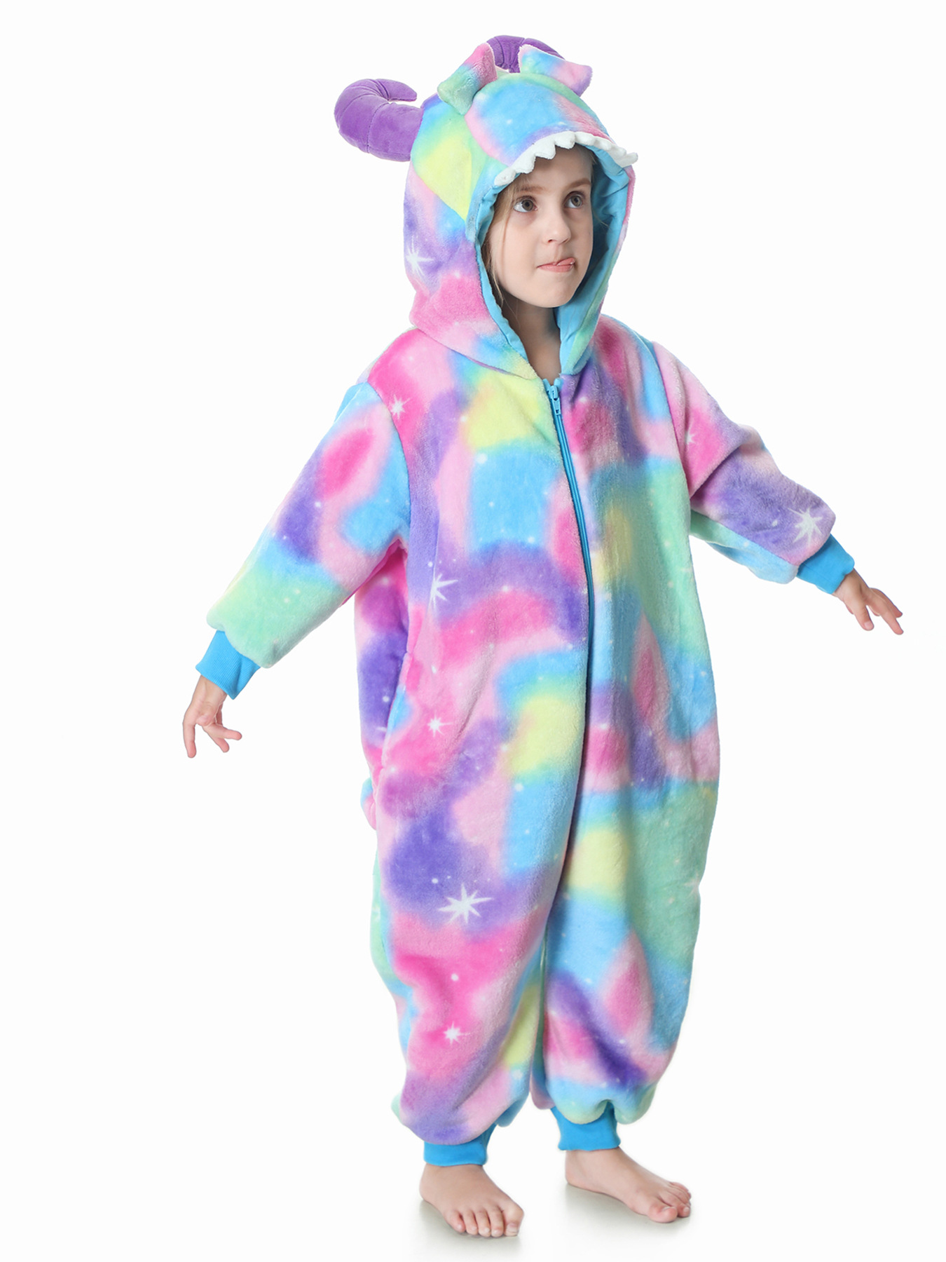 Autumn new children's cartoon styling clothes flannel single-layer tie-dye multi-color, monster styling onesie