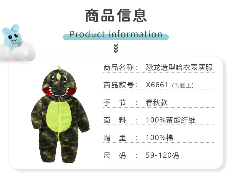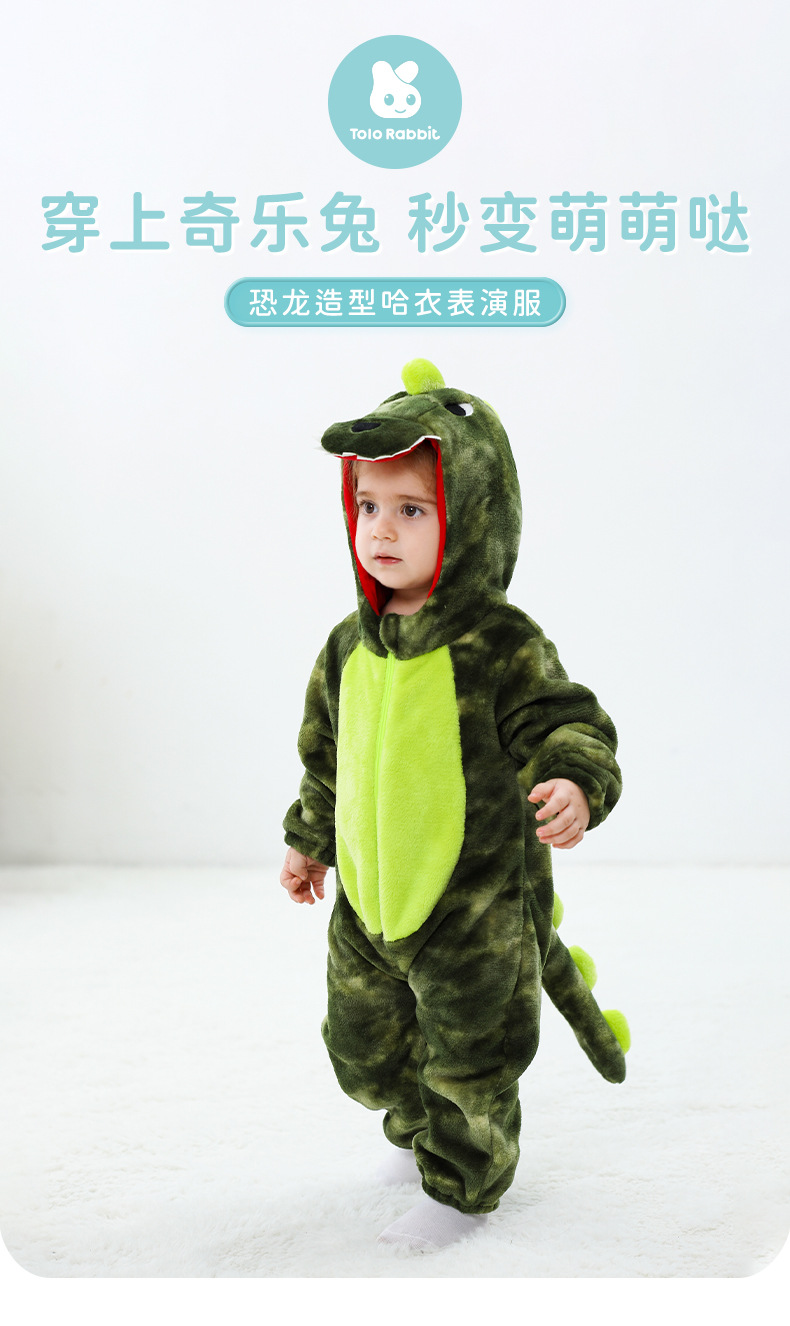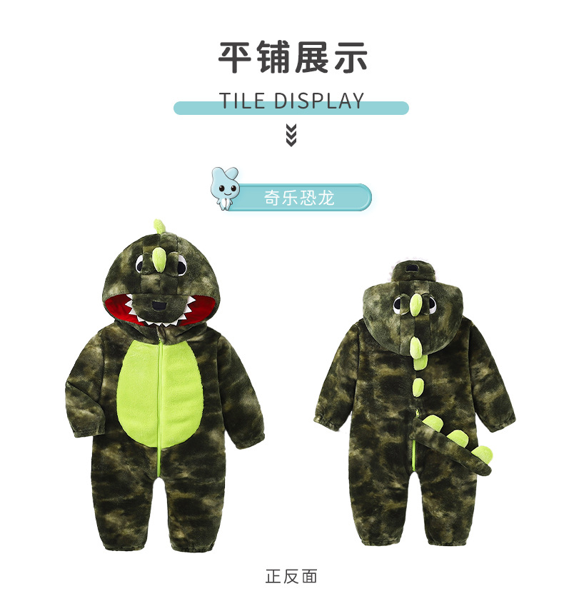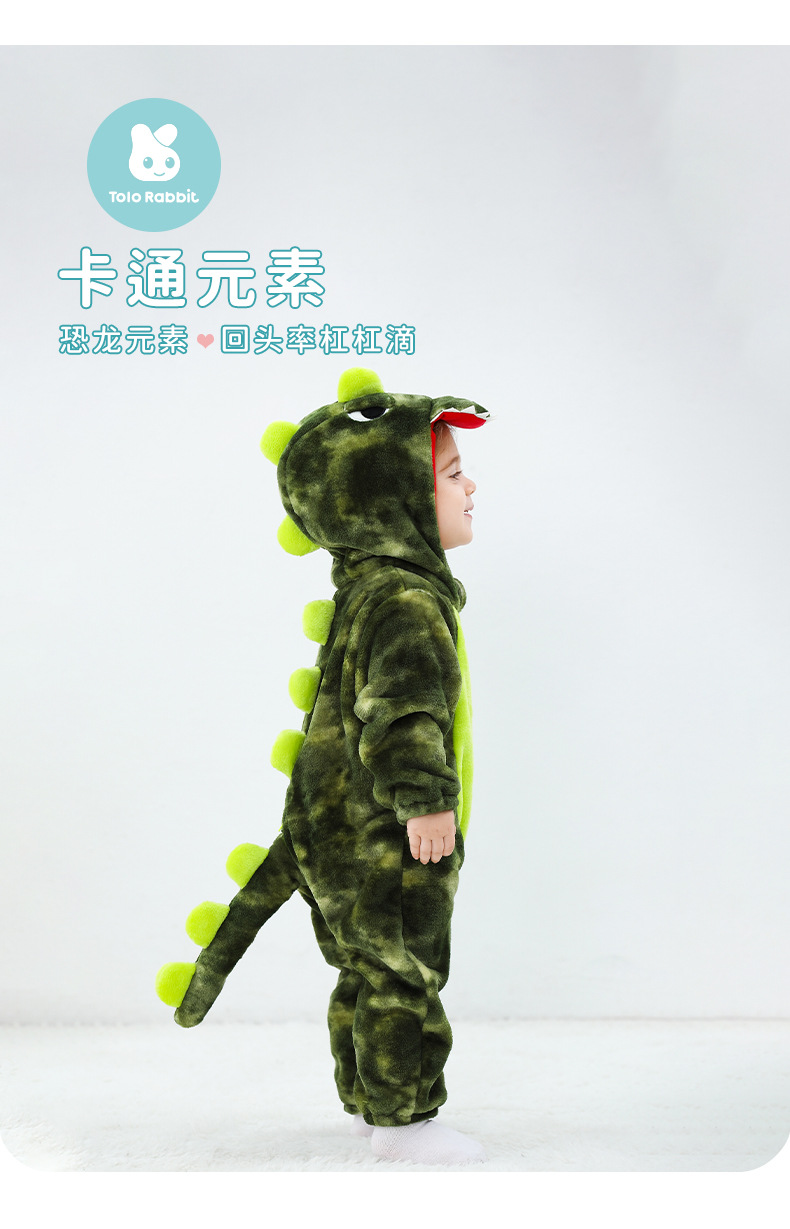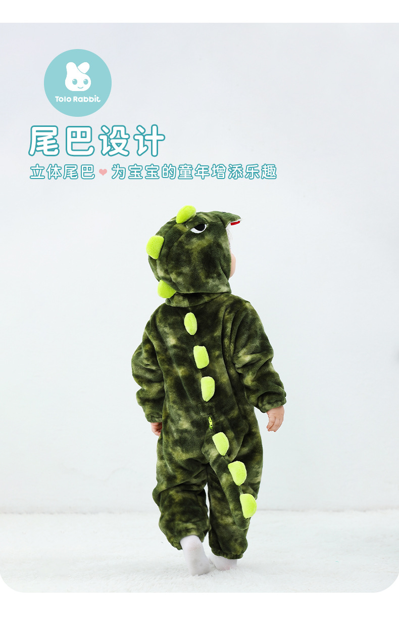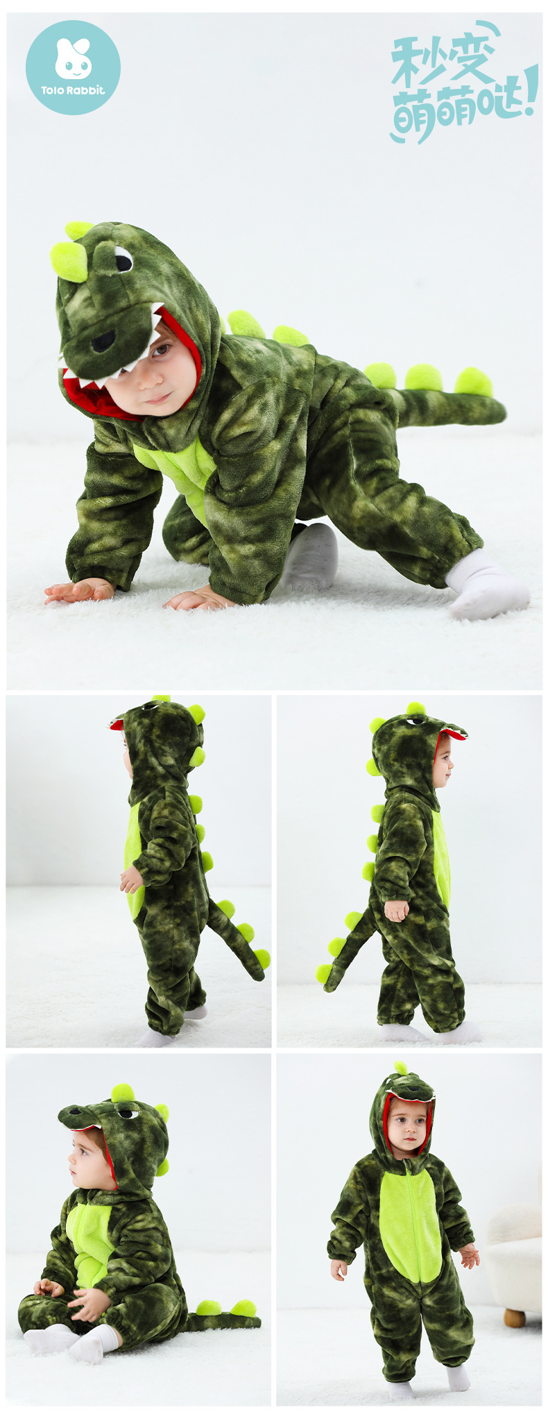 Autumn new single-layer flannel-shaped Romper for babies aged 0-3, dinosaur-shaped one-piece Romper with tail