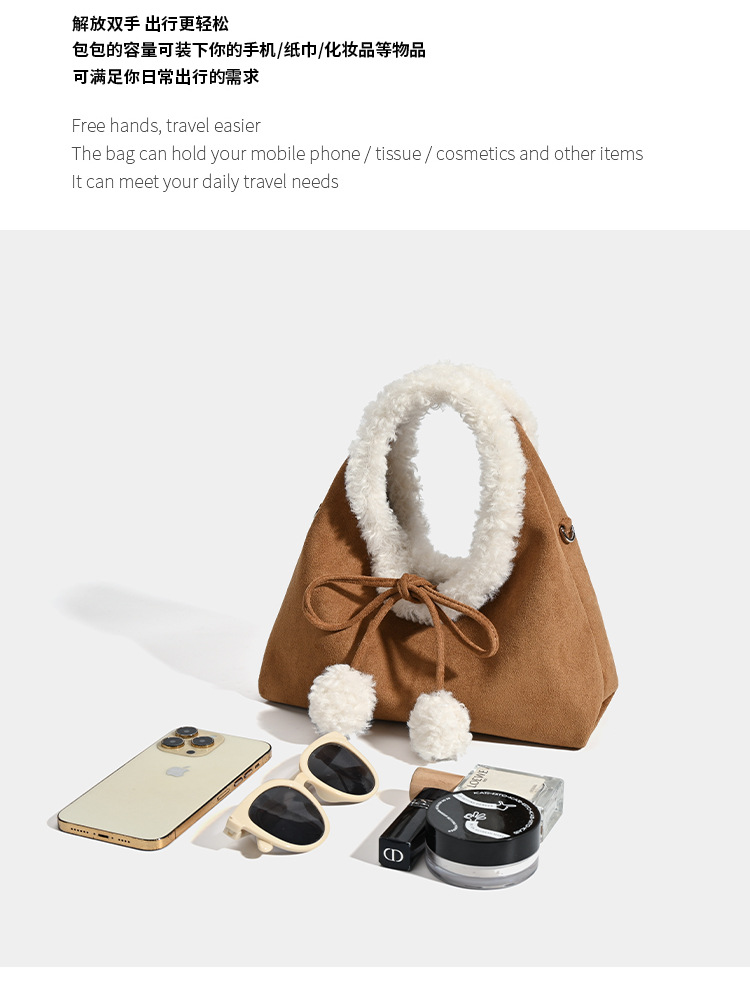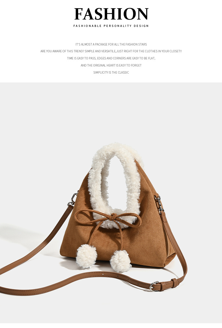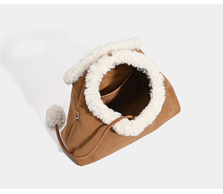 Bag Ladies 2025 New Retro Portable Lamb Wool Bucket Bag Premium Texture Niche Plush Messenger Bag
