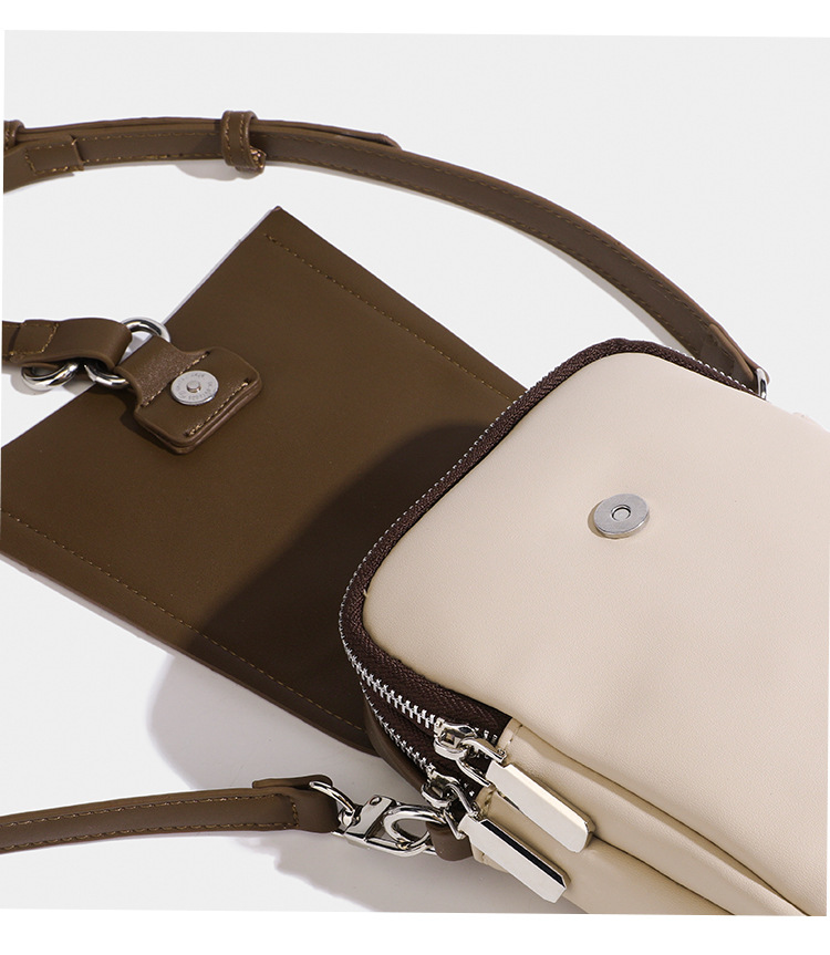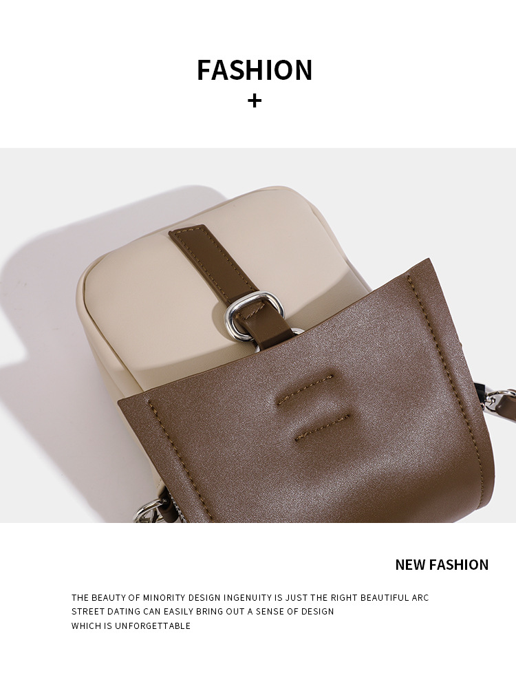 Stay on trend with mobile phone bag, featuring a chic contrasting color splicing design. This light, fashionable bag is perfect for daily use, offering both style and practicality in one small satchel. With its versatile messenger bag design, it’s ideal for keeping your essentials organized while adding a pop of color to any outfit. A must-have accessory for fashion-forward women on the go!