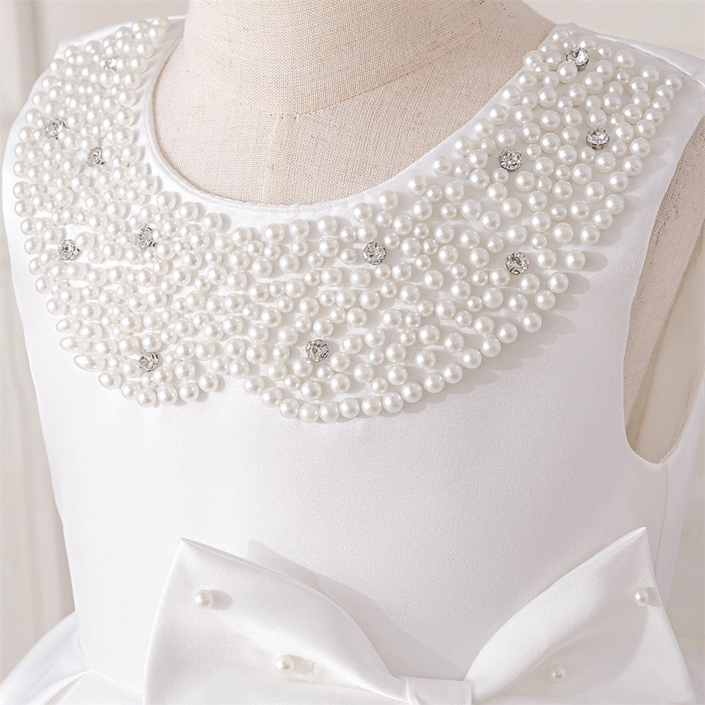 Cross-border new satin children's dress bow girl princess dress party festival dress girl dress