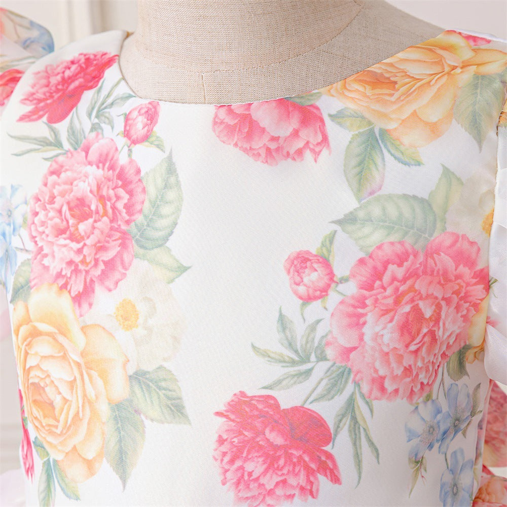 Europe and the United States new infant dress glass yarn printing bubble sleeve princess dress baby first birthday wash dress