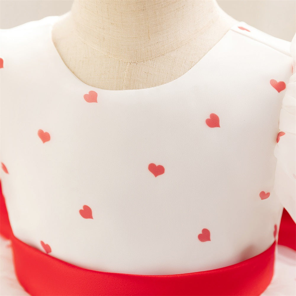 European and American new baby's first birthday washing dress chiffon bubble sleeve love polka dot princess dress wedding flower girl skirt