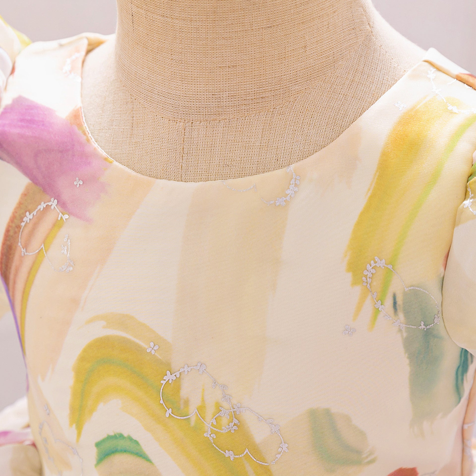 European and American new girls' baby dress skirt infant bubble sleeve printed flower girl dress one-year-old baby dress