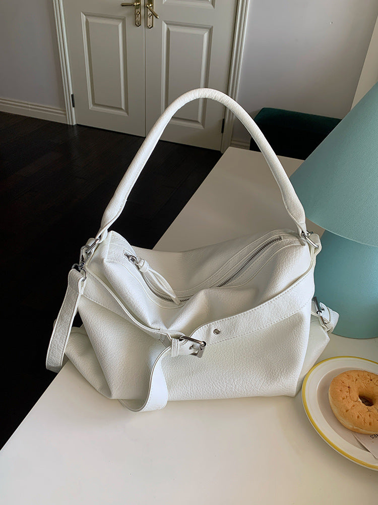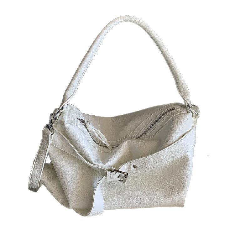 Large capacity black versatile Spice Girl locomotive bag personalized fashionable casual shoulder armpit bag commuter messenger tote bag