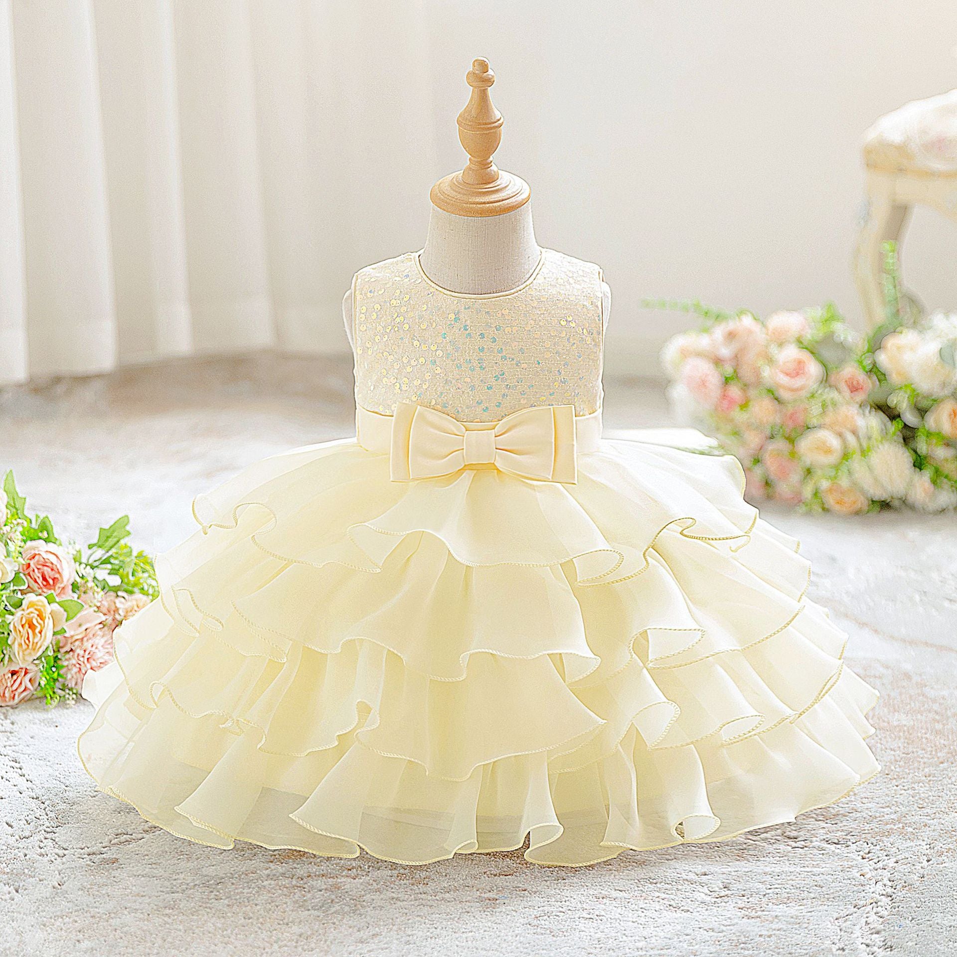 New girls dress dress sequined sleeveless princess dress fungus lace cake dress wedding flower girl dress dress