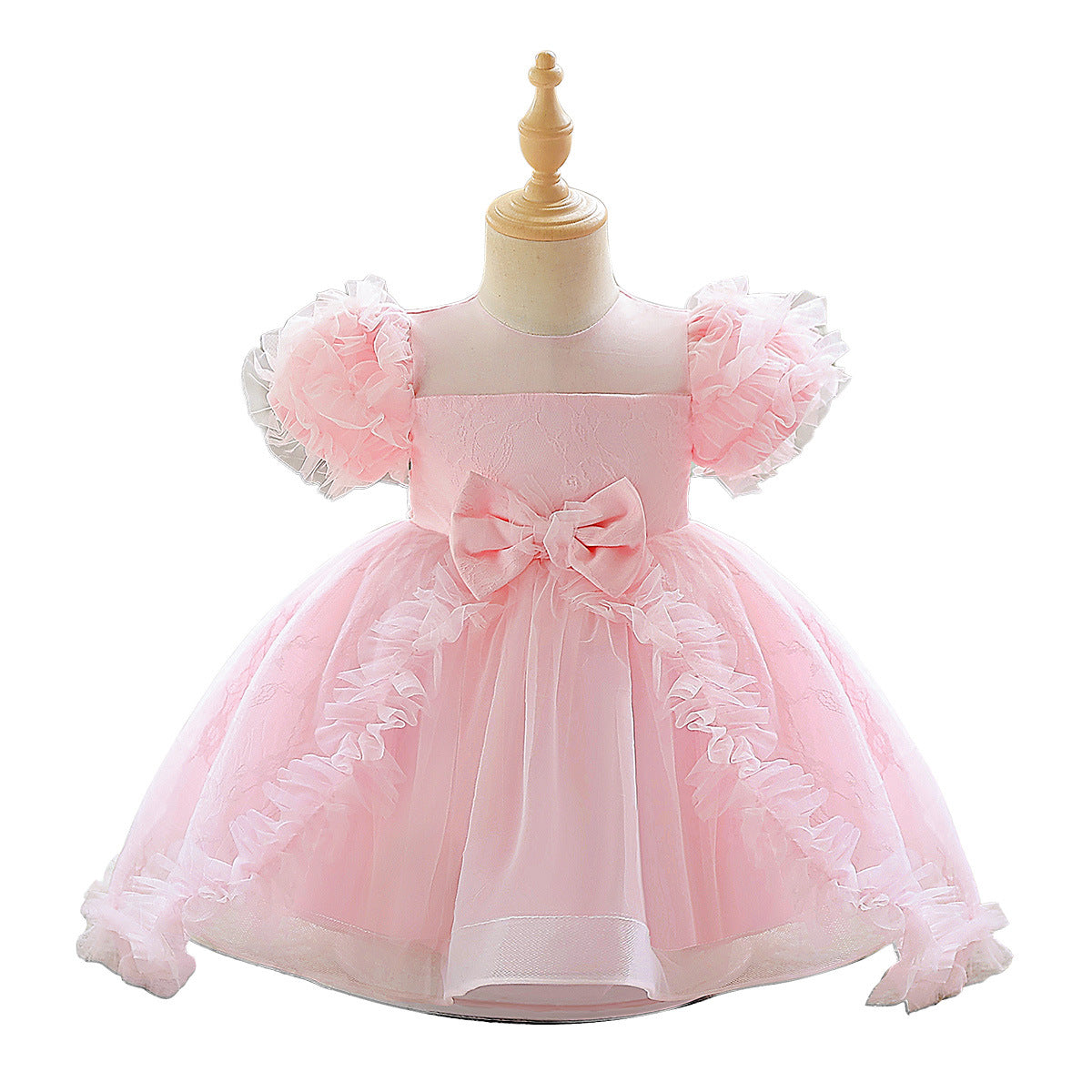 New Girls Princess Dress Bow Dress Mesh Tucker Dress Birthday Prom Children's Dress Performance Dress