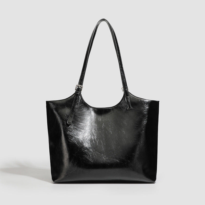 New simple oil wax leather shoulder bag large capacity tote bag fashion daily commuting versatile casual shoulder bag women