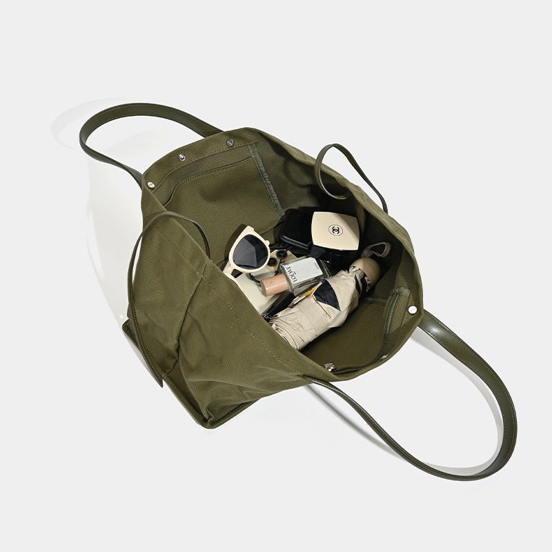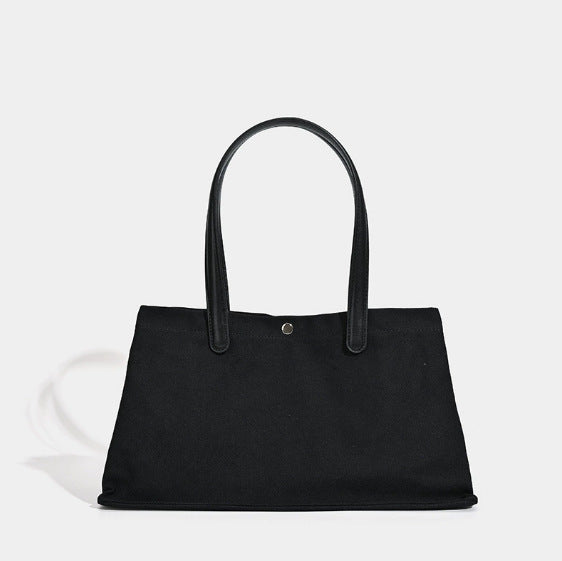 Niche design French trendy luxury leather splicing canvas large-capacity tote bag 2025 new commuter handbag