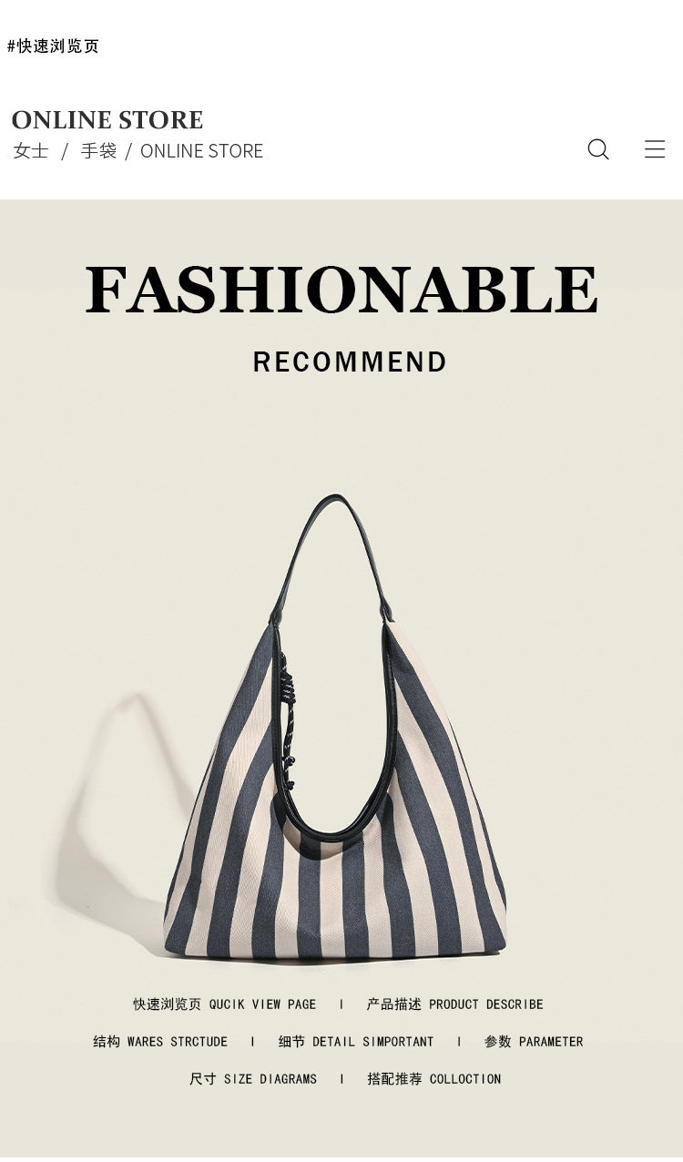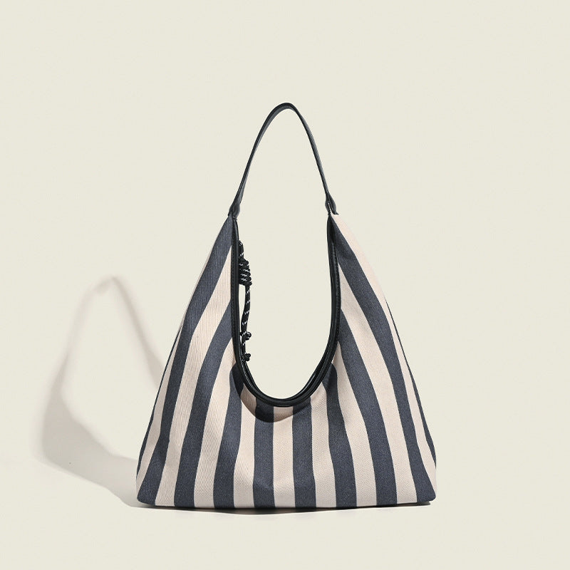 Niche Slack Canvas Striped Bag Stylish Vintage Underarm Bag Student Commuter Large Capacity Tote Bag Shoulder Bag