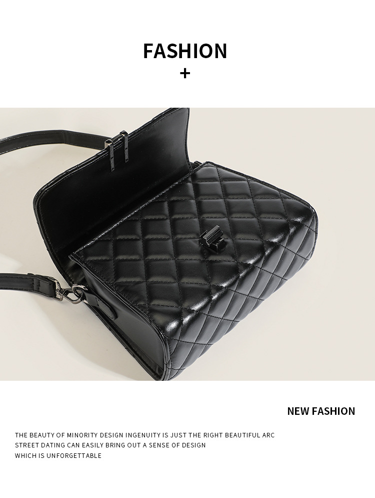 Embrace simplicity and style with Rhombus Small Square Bag. This portable, fashion-forward bag offers a large capacity while maintaining a sleek and minimalist design. Perfect for daily commuting, the versatile oblique span shoulder strap provides comfort and convenience. Whether for work or casual outings, this bag is the ideal accessory for women who value both practicality and modern elegance