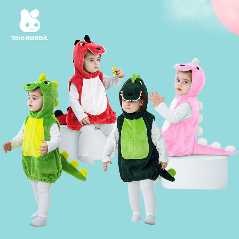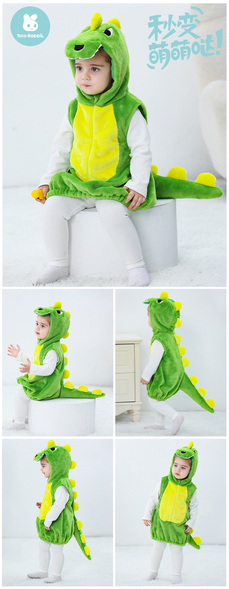 Qile Rabbit autumn new 0-3 year old baby flannel single-layer modeling Romper cartoon dinosaur modeling vest