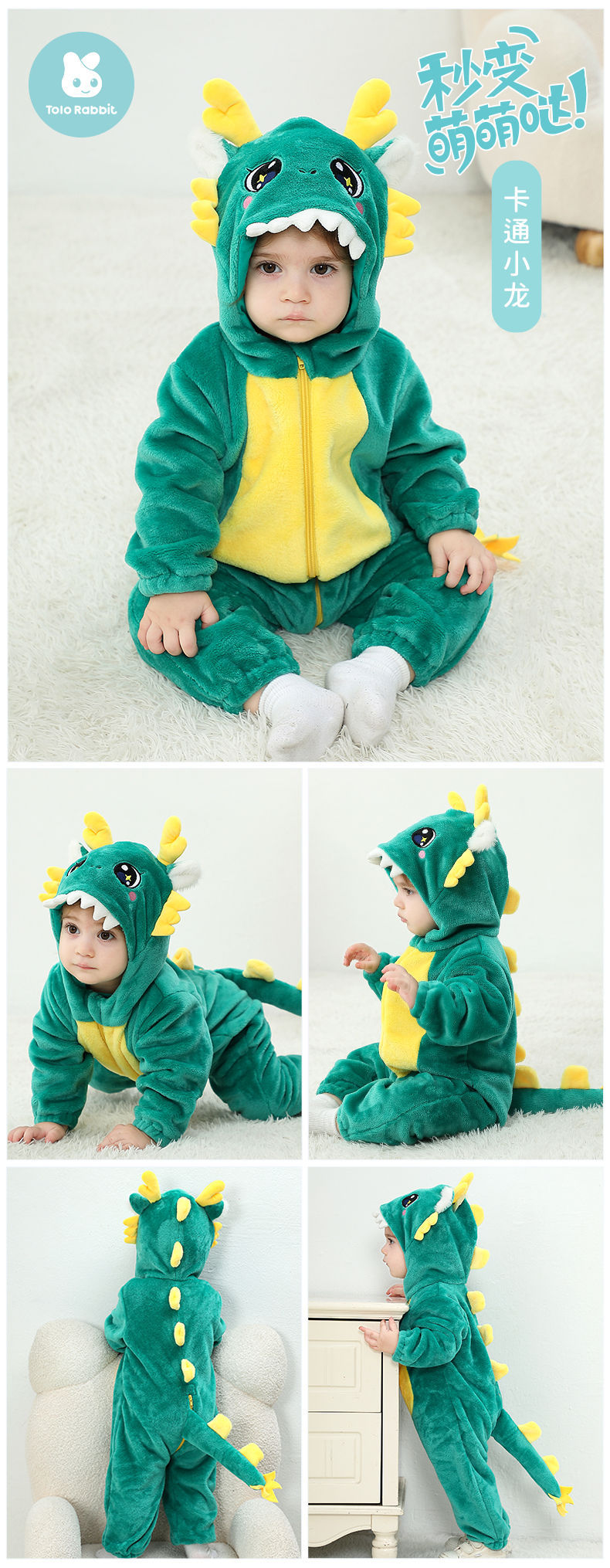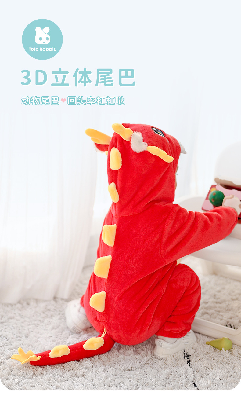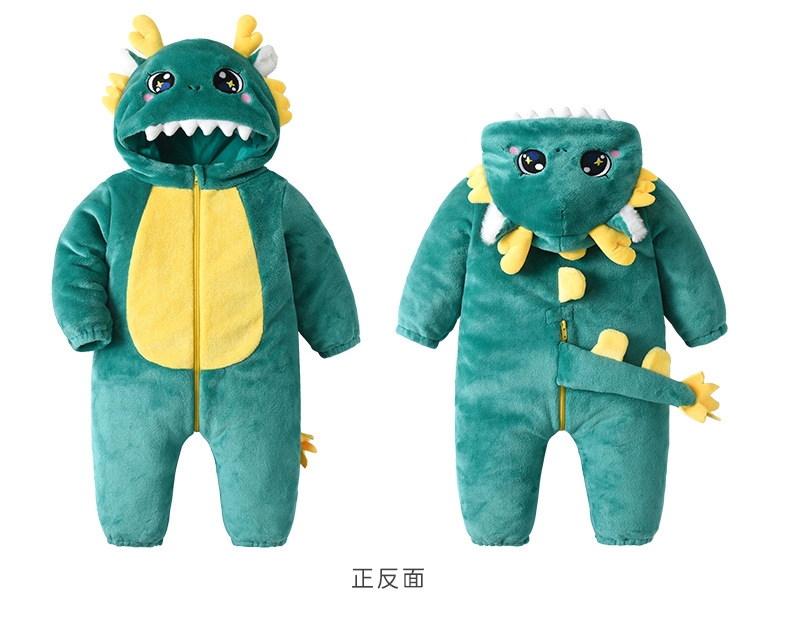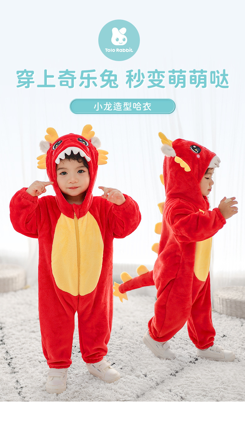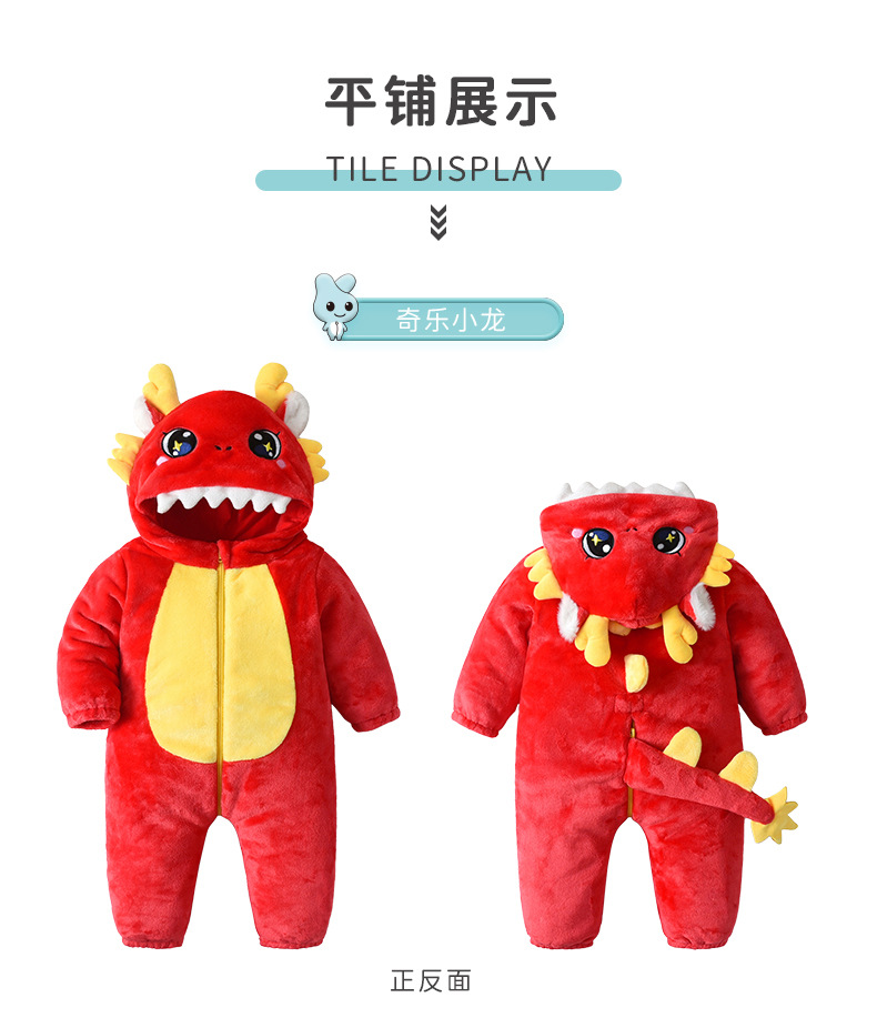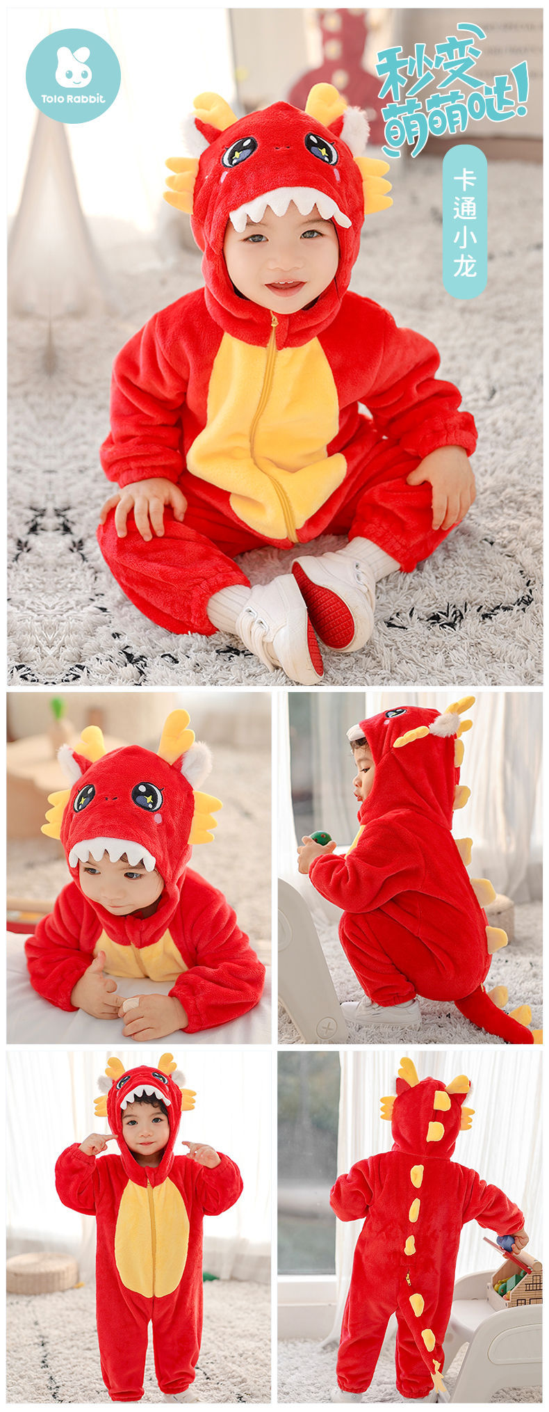 Qile Rabbit autumn new 0-3 year old baby single layer flannel Chinese dragon shape hooded one-piece Romper