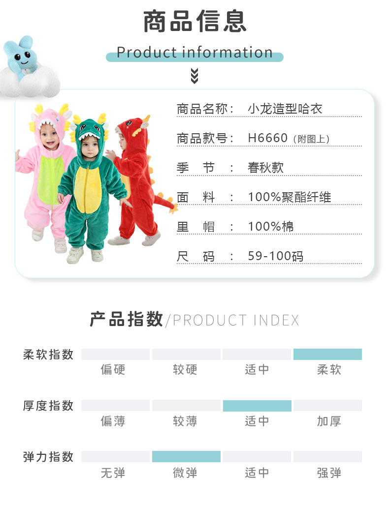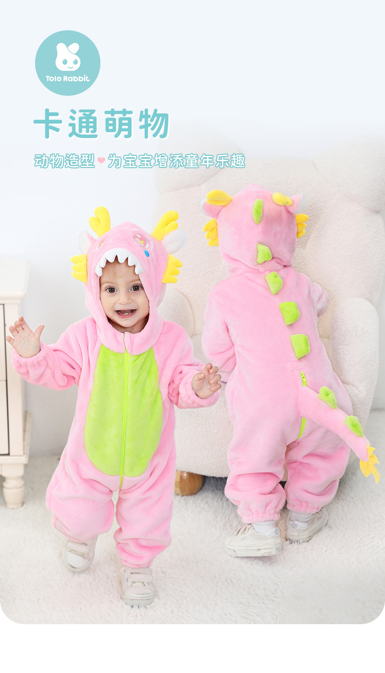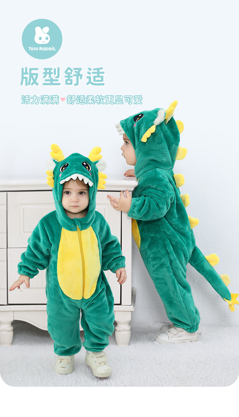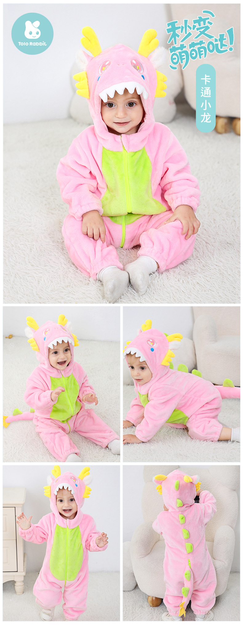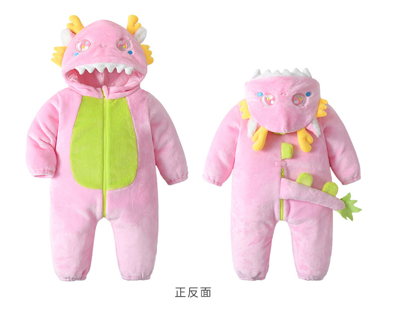 Qile Rabbit autumn new 0-3 year old baby single layer flannel Chinese dragon shape hooded one-piece Romper