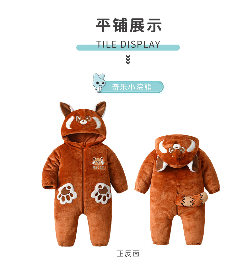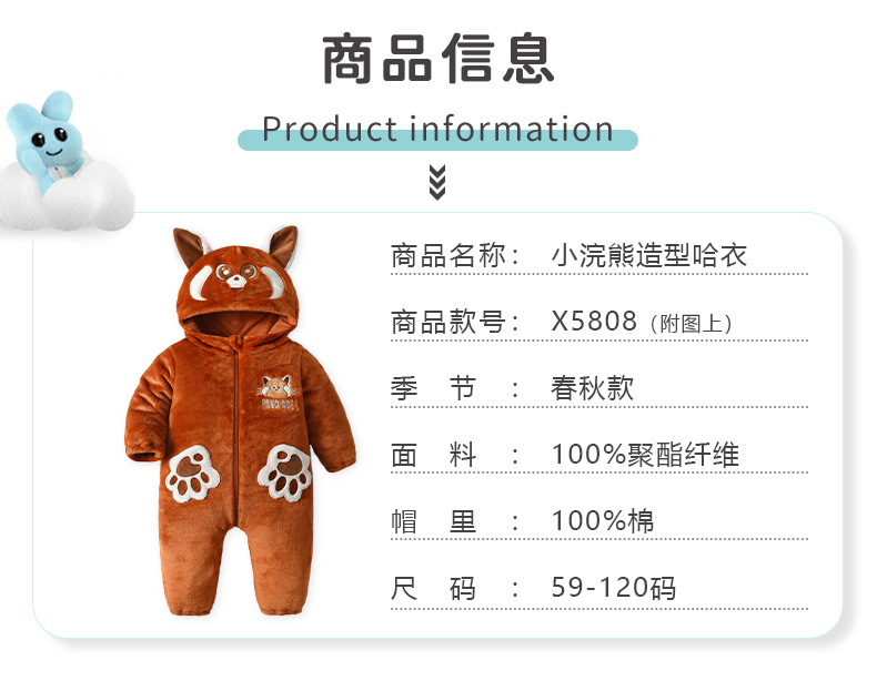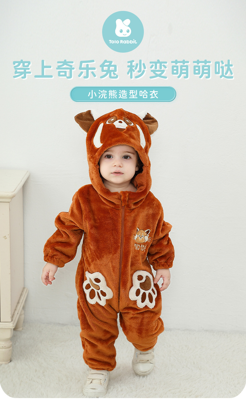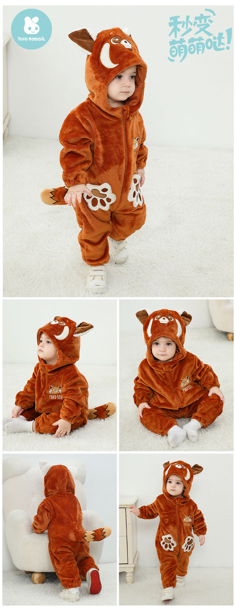 Qile Rabbit autumn new baby comfortable flannel single-layer animal red panda shape one-piece Romper