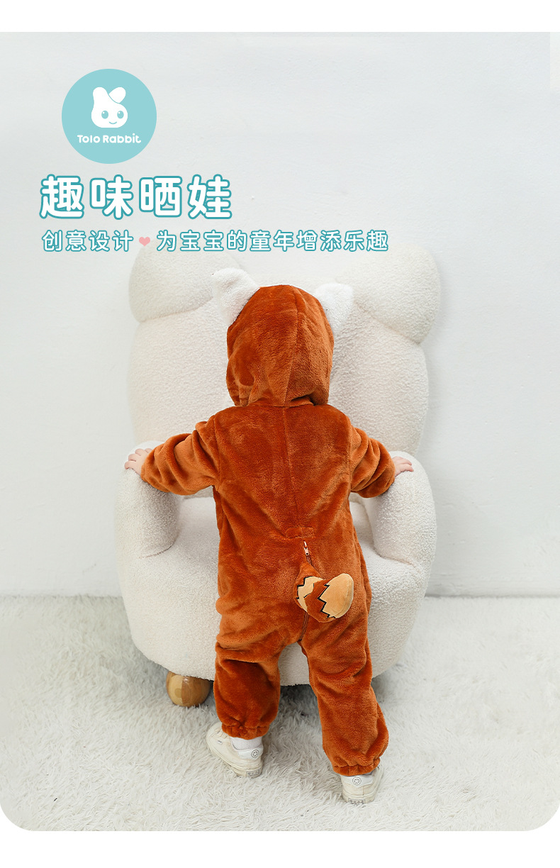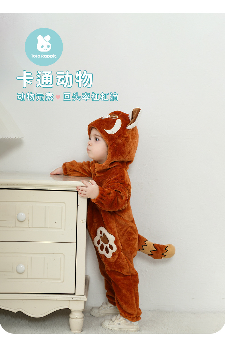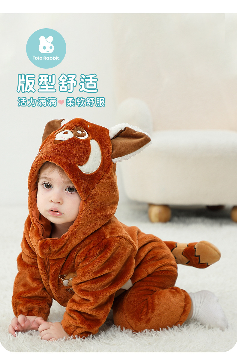 Qile Rabbit autumn new baby comfortable flannel single-layer animal red panda shape one-piece Romper