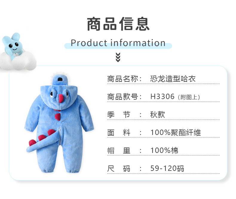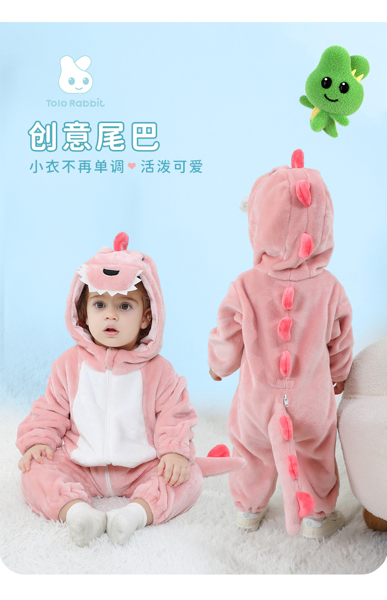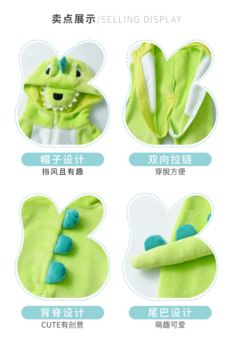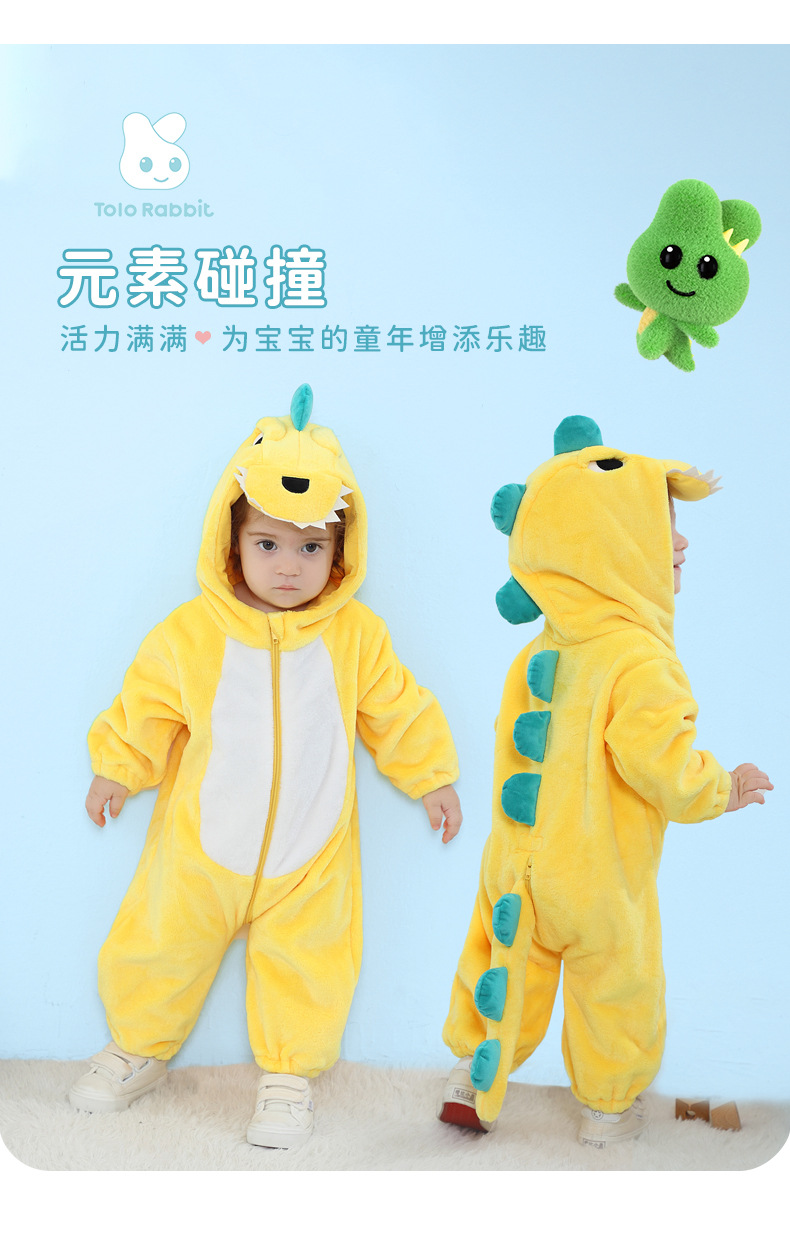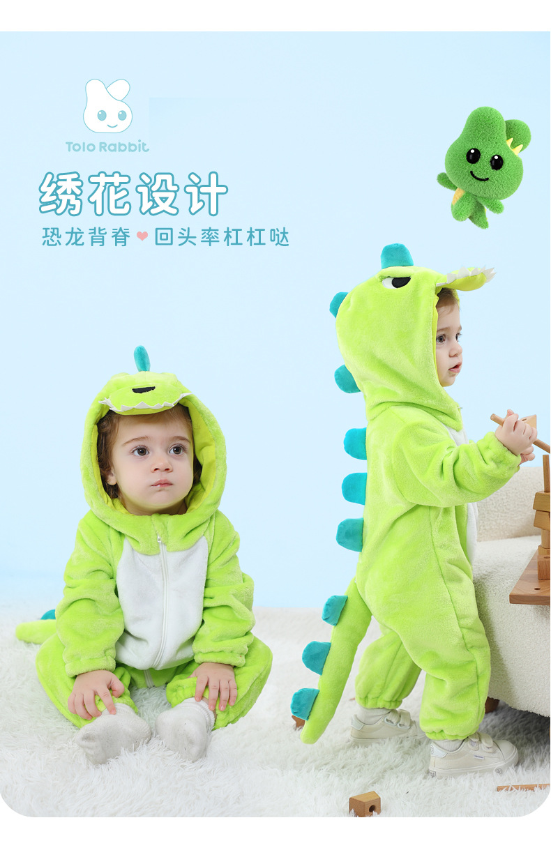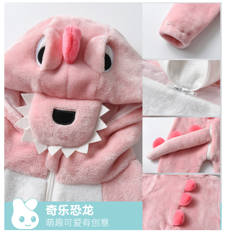 Qile Rabbit Children's Clothing Wholesale Spring New Flannel Thin Dinosaur Single Layer Romper Jumpsuit H3306
