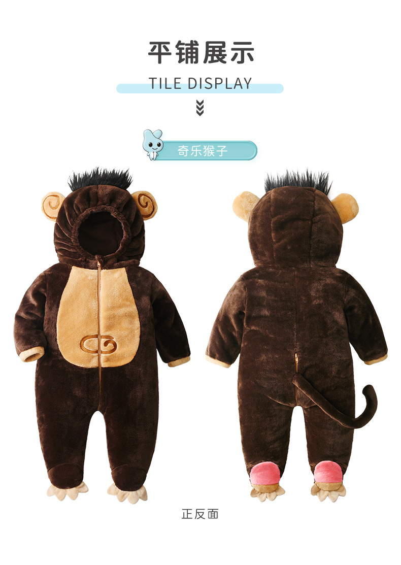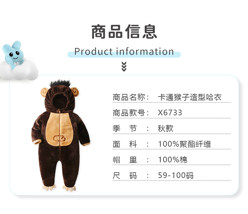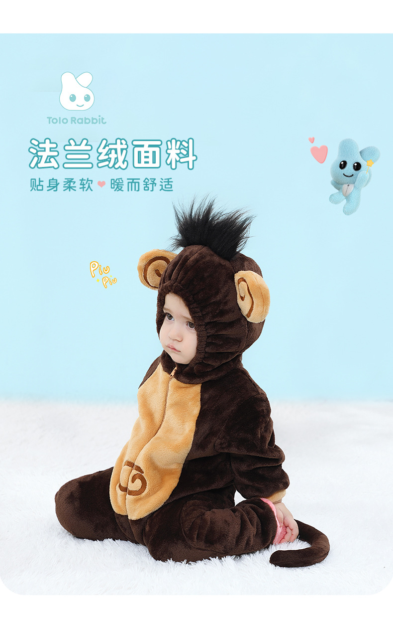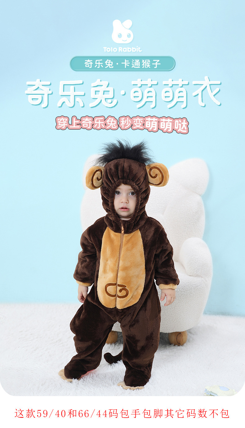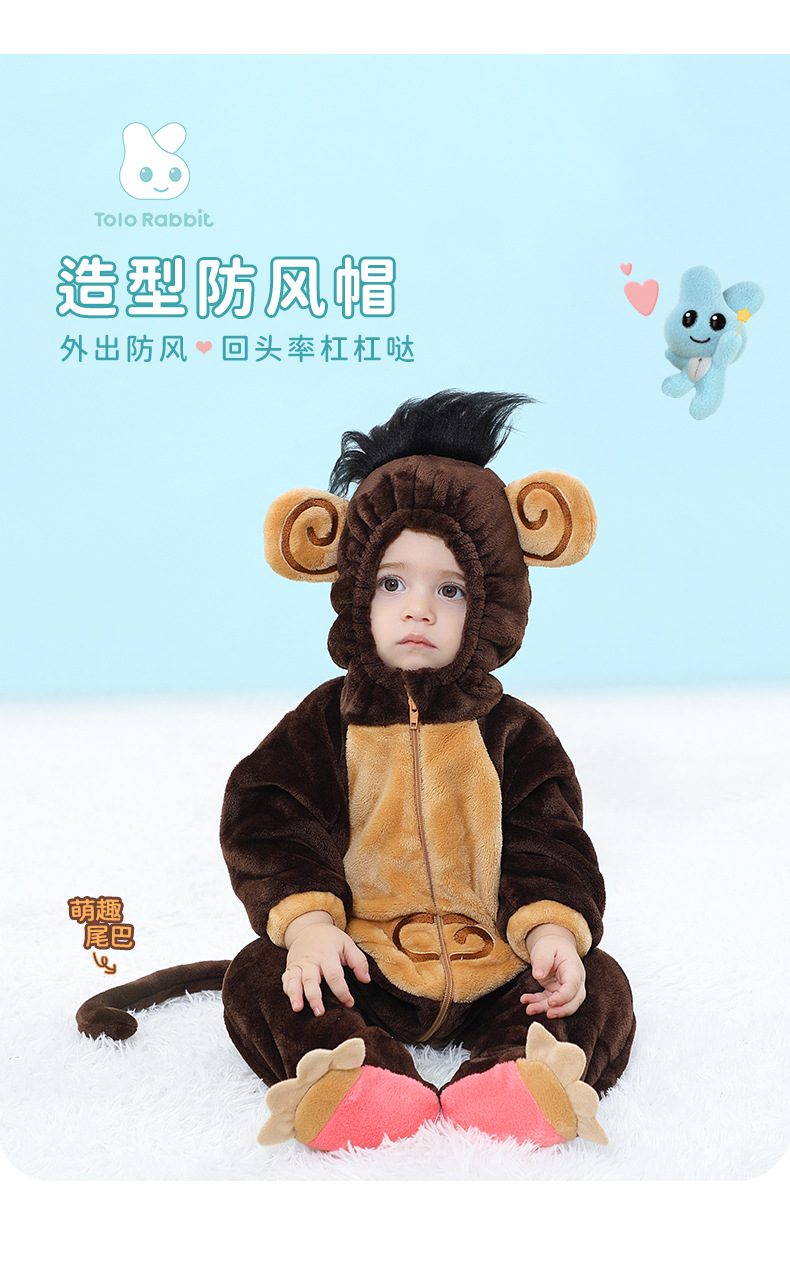 Qile Rabbit Spring and Autumn Infant and Toddler Animal Shaped One-piece Romper Monkey Shaped One-piece Romper Performance Suit