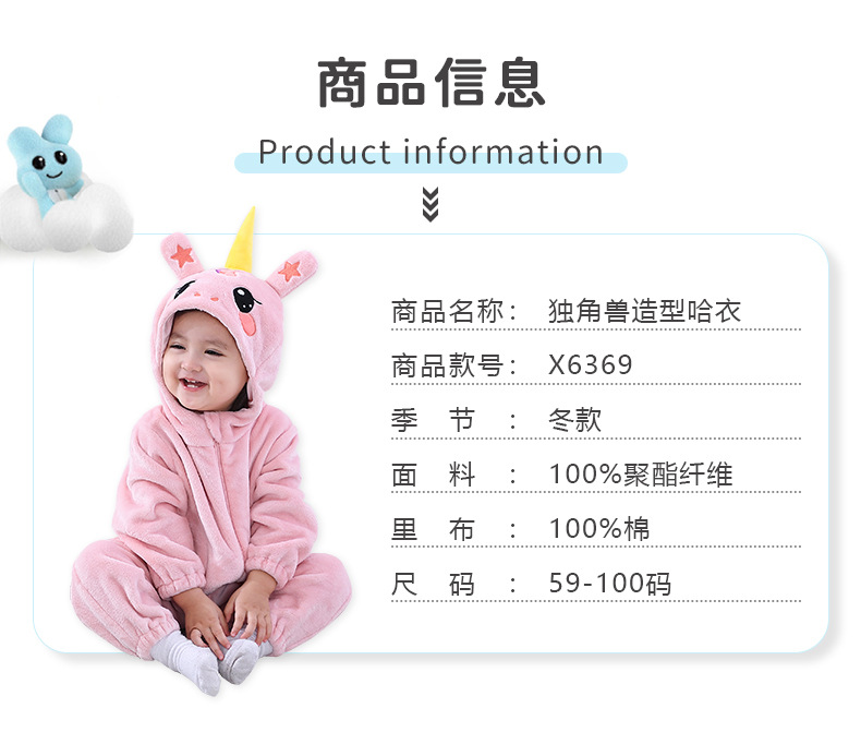 Qile Rabbit Spring and Autumn New Infant and Toddler Shape Romper Unicorn Shape One-piece Romper Climbing Suit