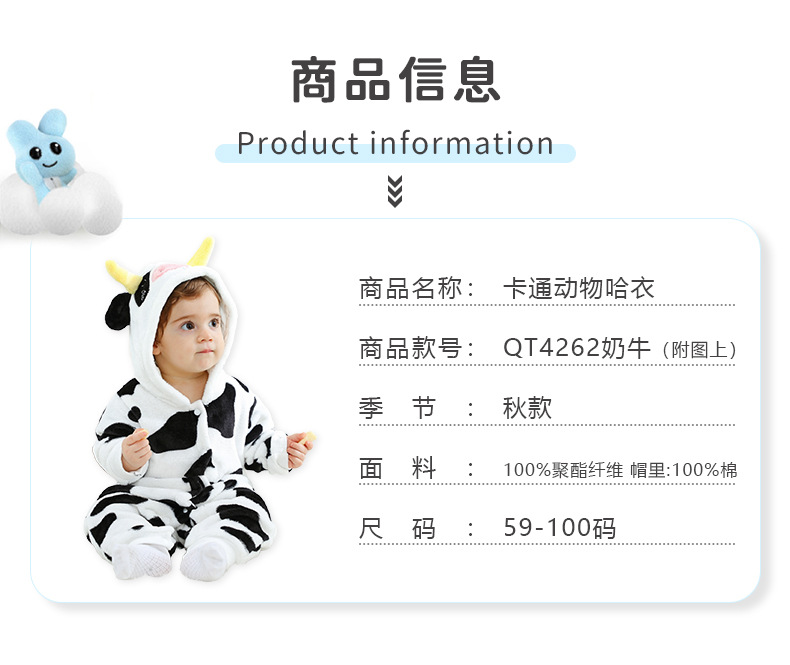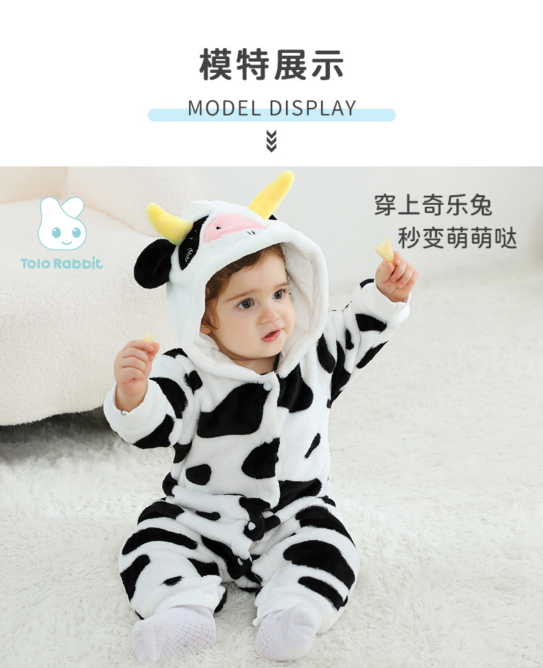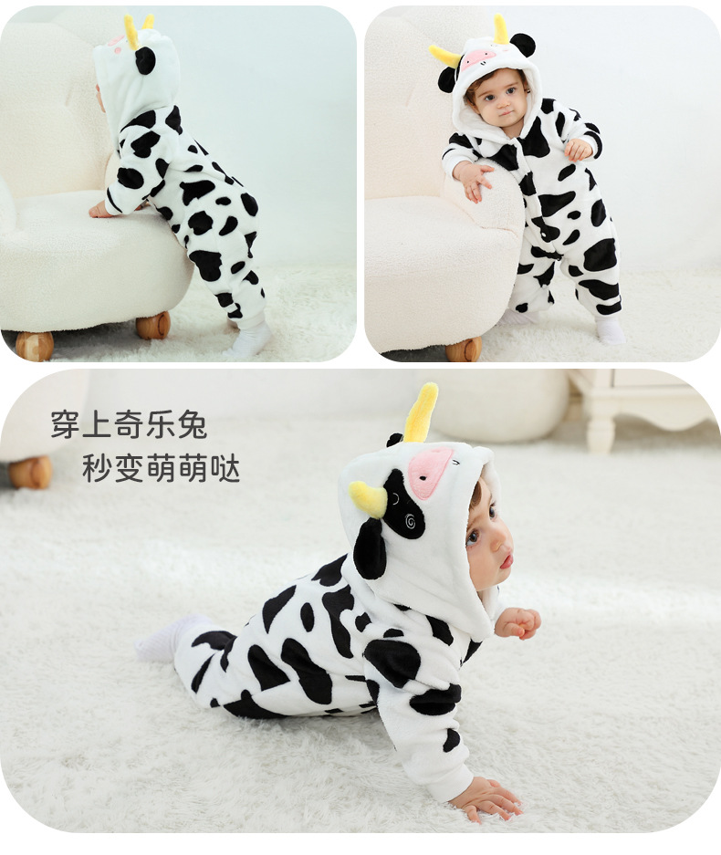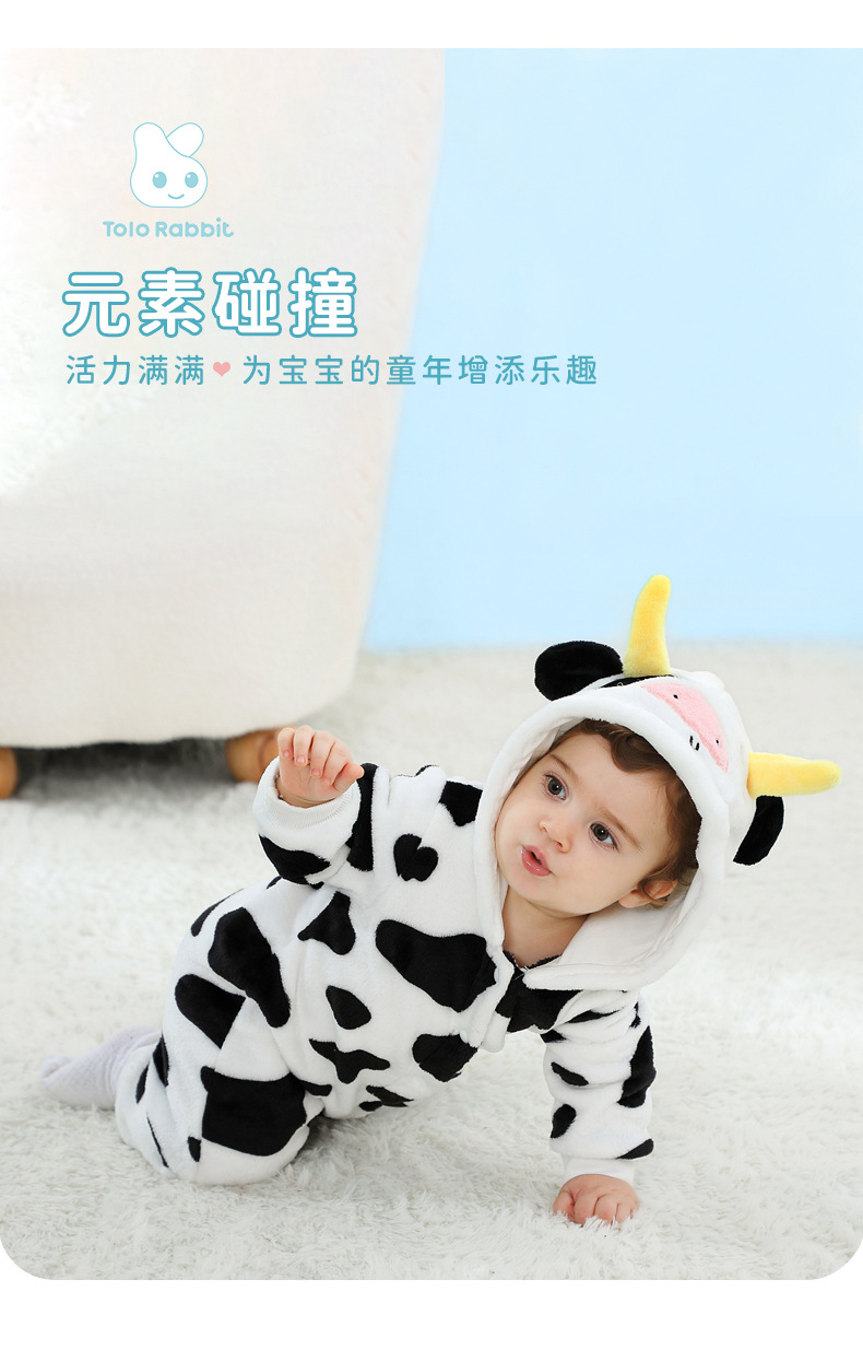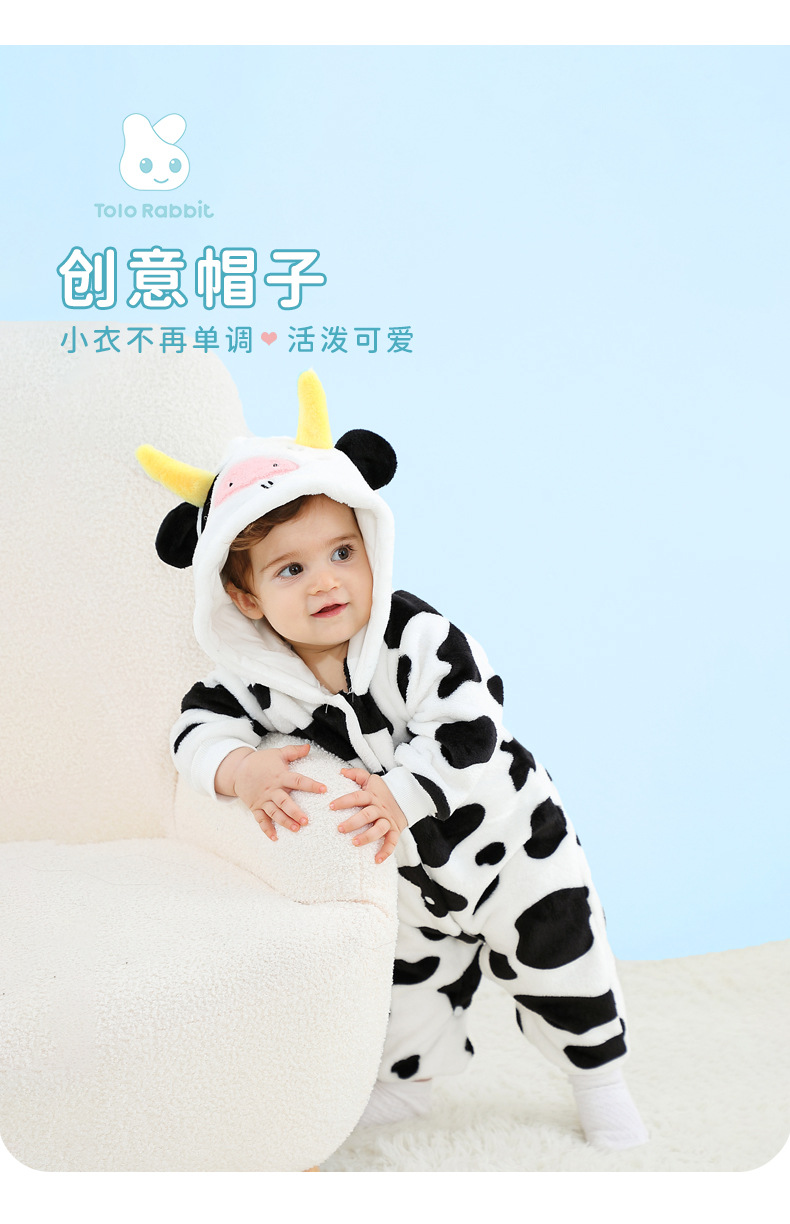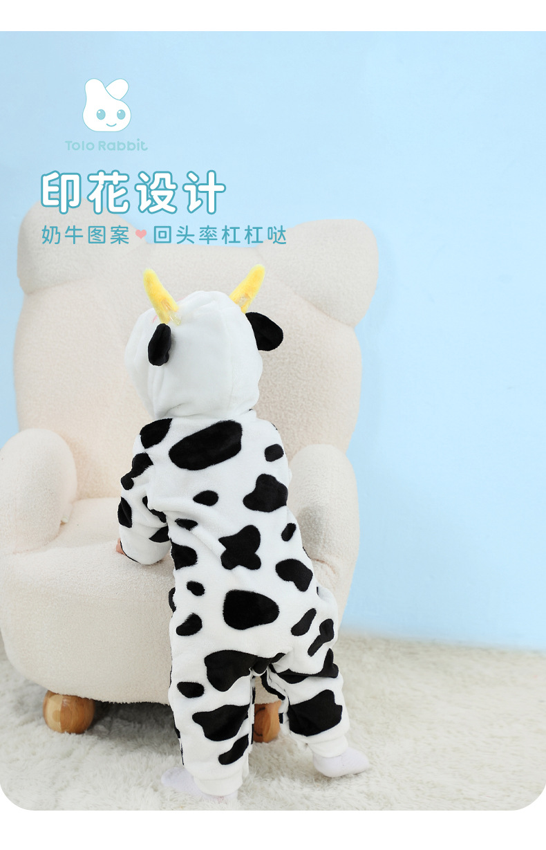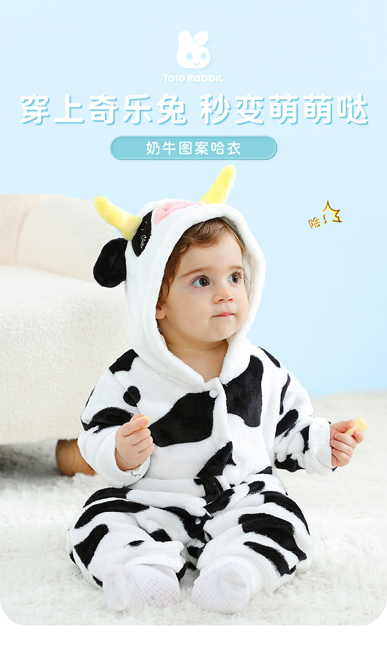 Qile Rabbit's autumn new product cute cow-shaped onesie 0-3 years old infant and toddler hooded single-layer Romper