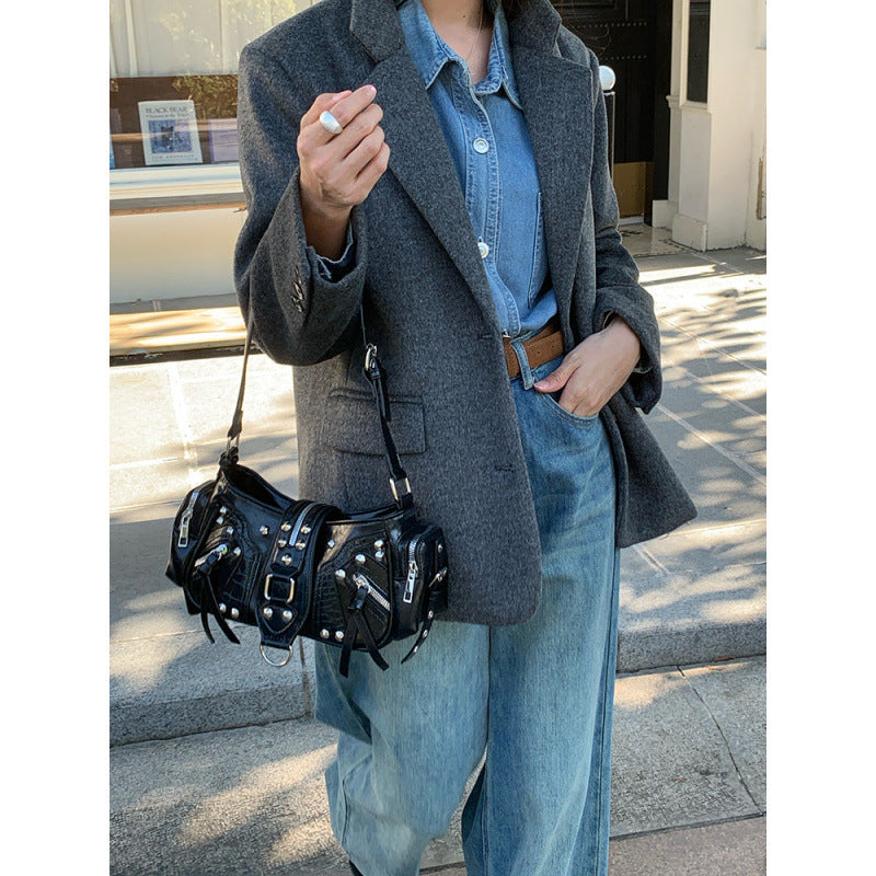 Sweet Cool Spice Girl Underarm Bag Niche Design Sense Versatile Heavy Industry Locomotive Bag Retro Commuter Shoulder Crossbody Bag Female