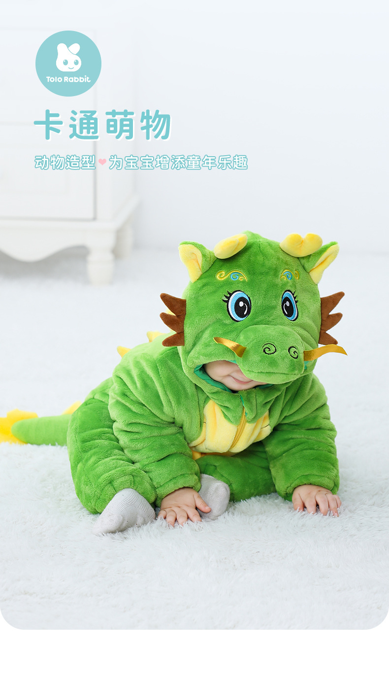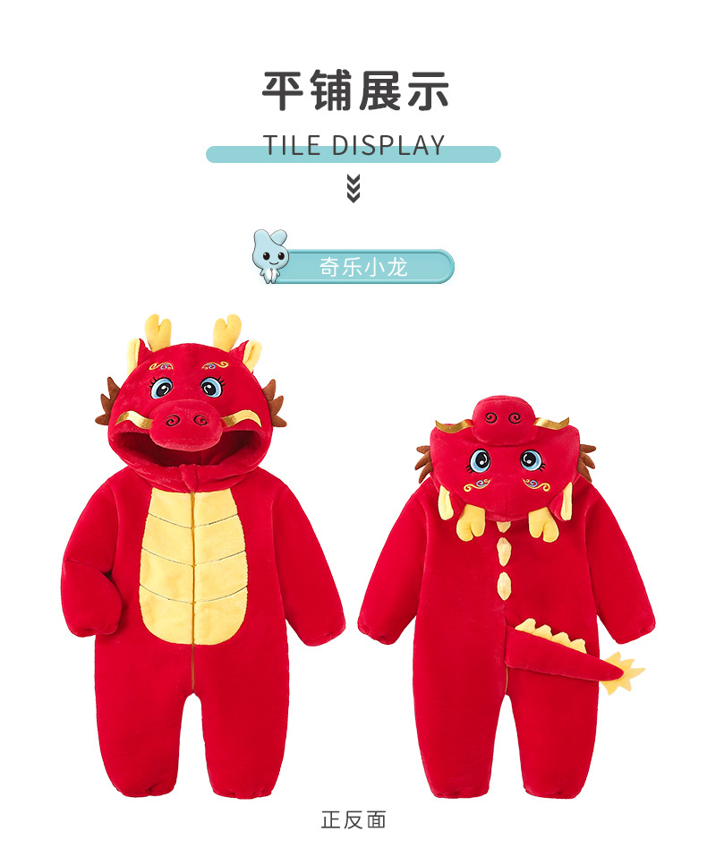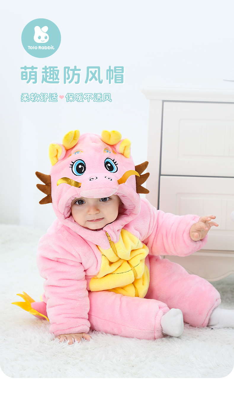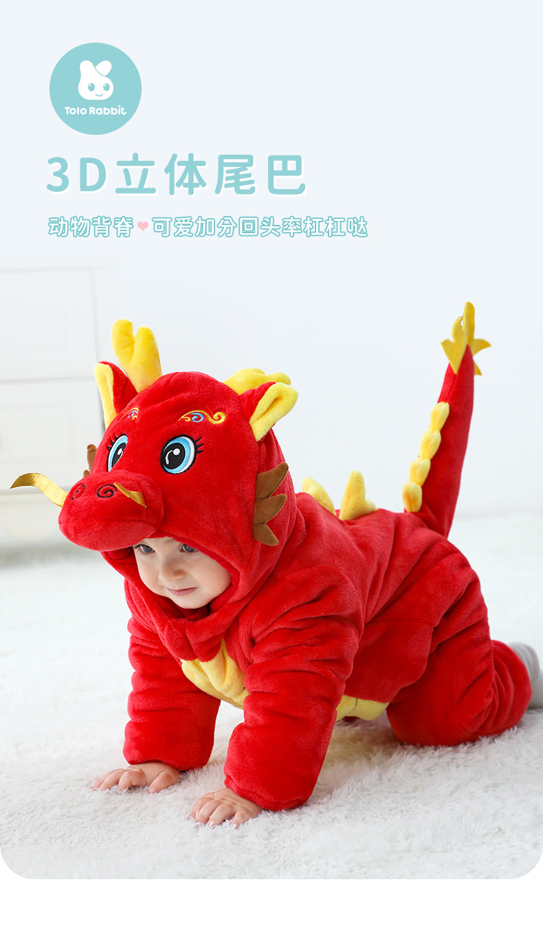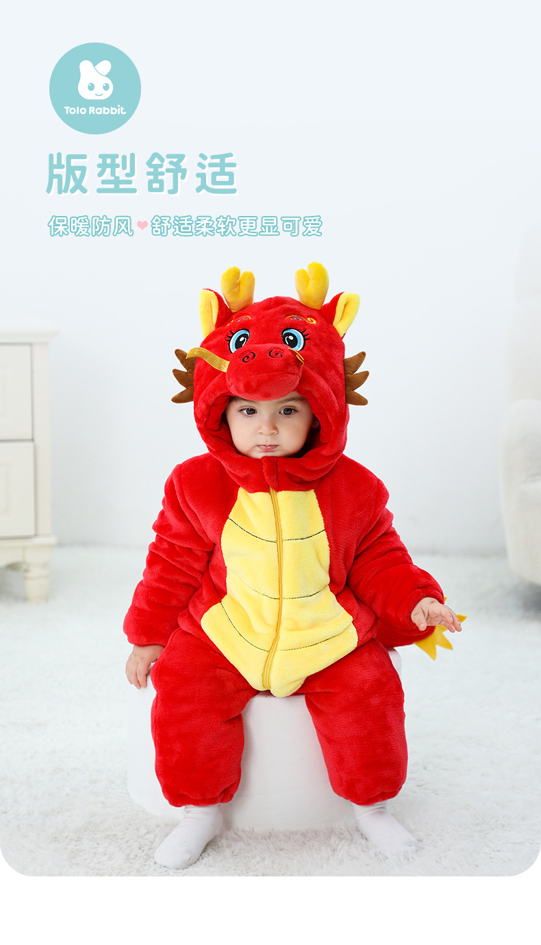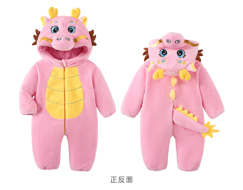 Winter new infant male treasure female treasure cute personality Chinese dragon shape flannel thickened warm Romper