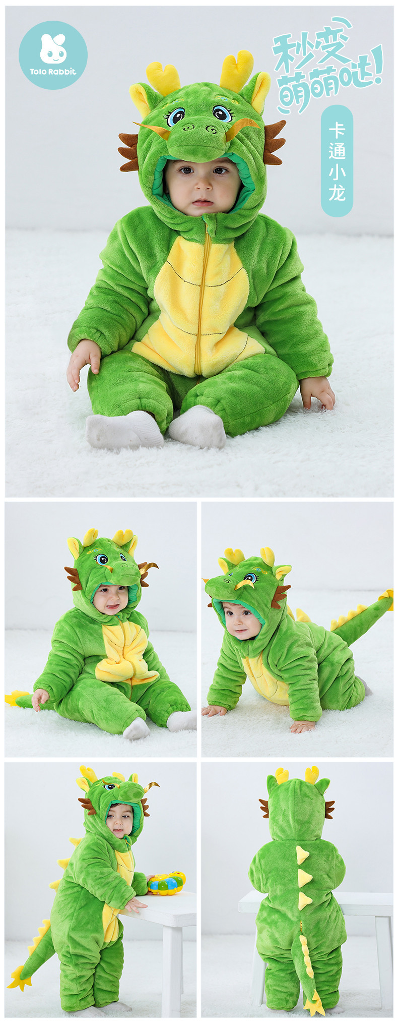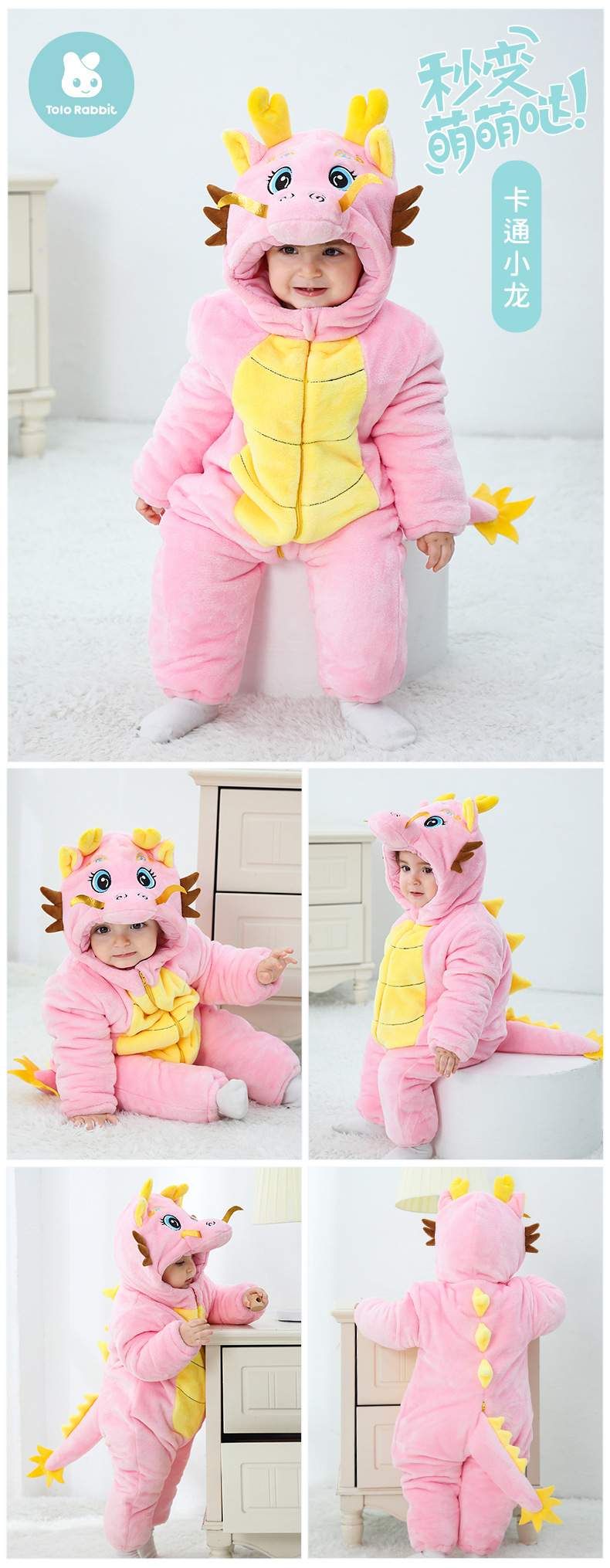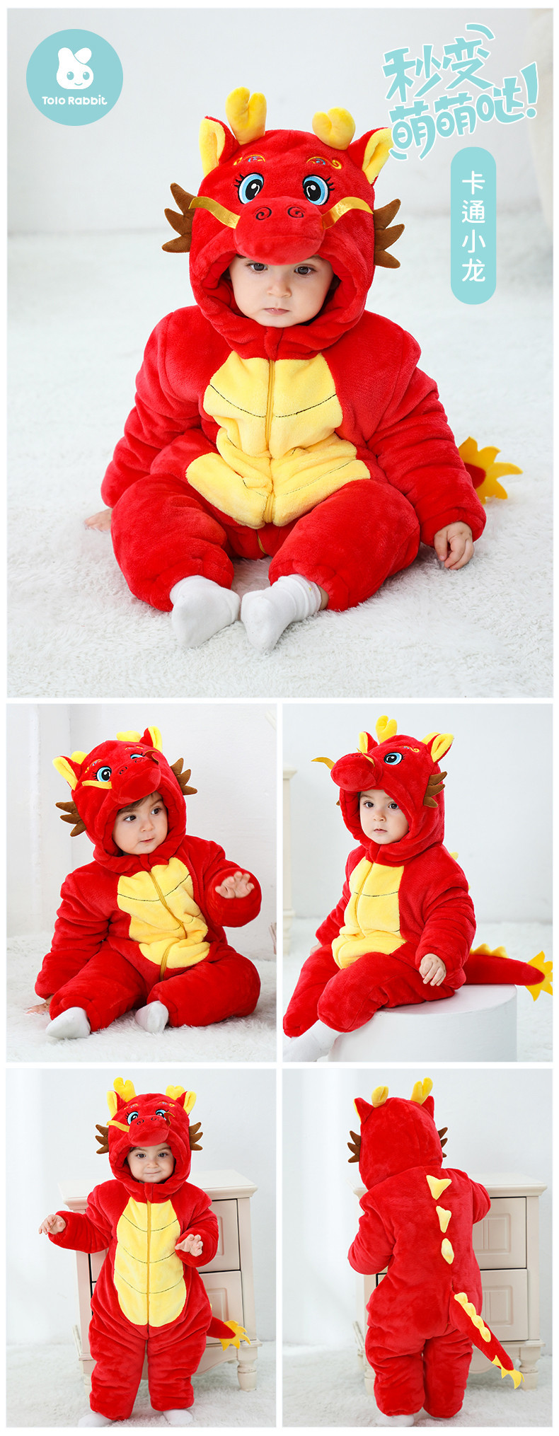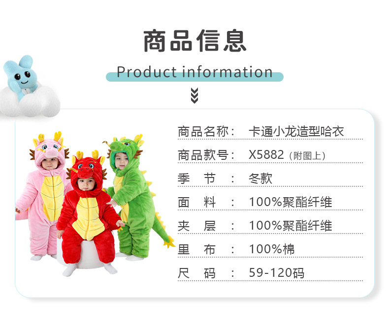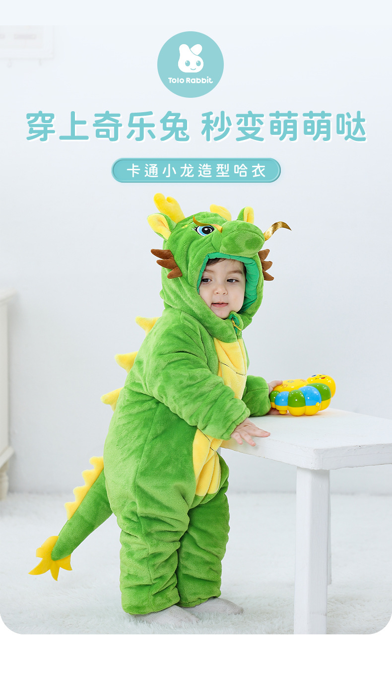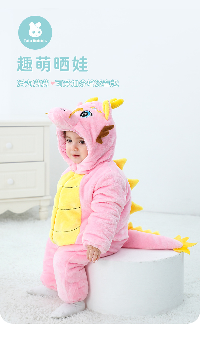 Winter new infant male treasure female treasure cute personality Chinese dragon shape flannel thickened warm Romper